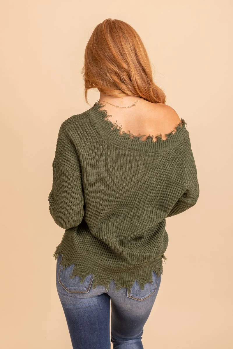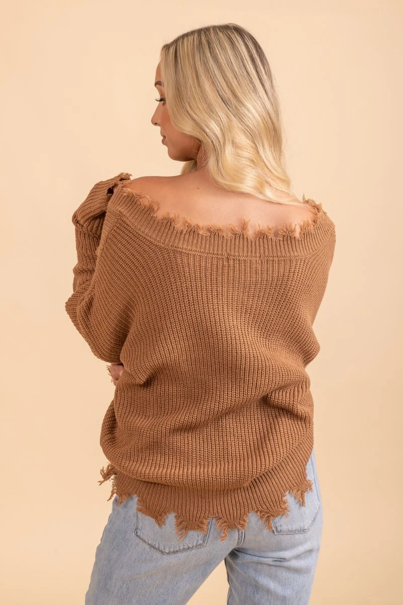 Our new Autumn Moon Distressed Sweater is so cute! We’re so in love with the off the shoulder look, distressed edges, and v-neckline! The 2 color options are perfect colors for this upcoming season! This sweater will keep you warm, cute, and cozy all season long!