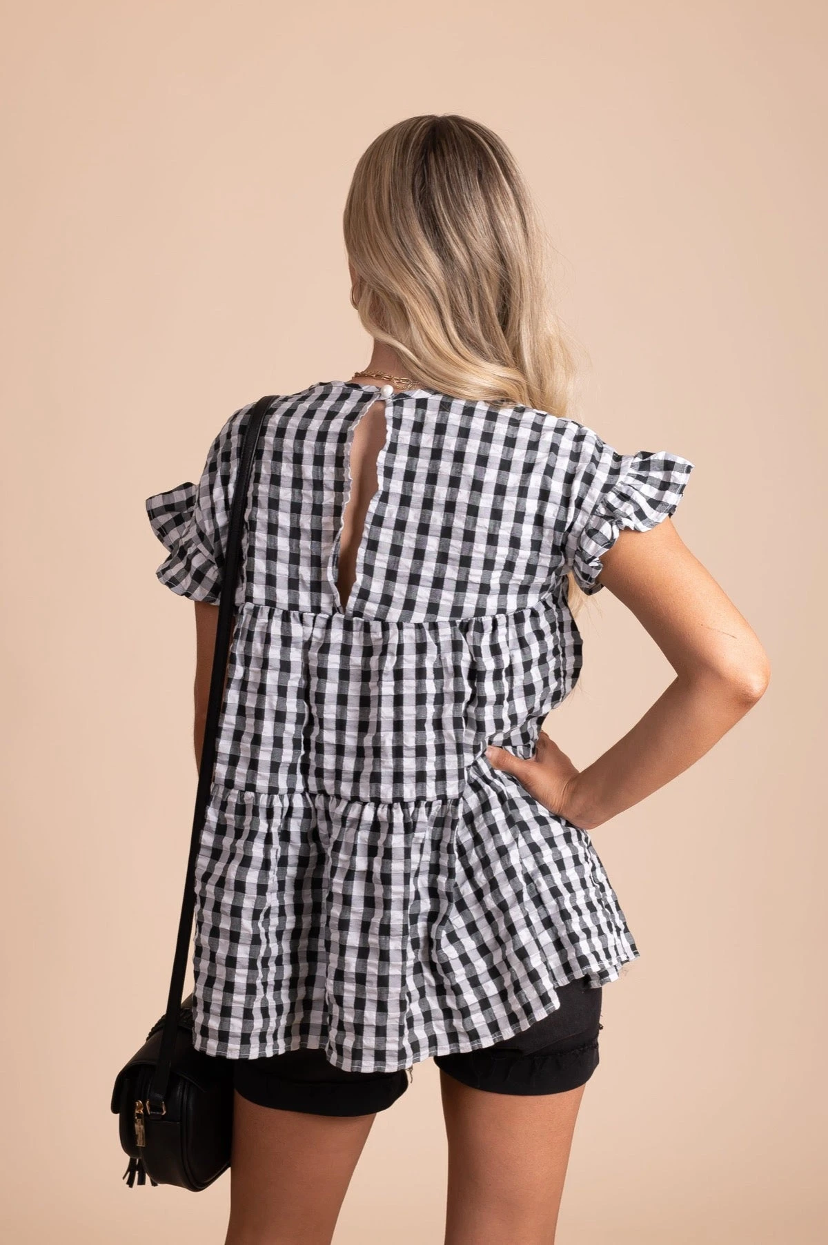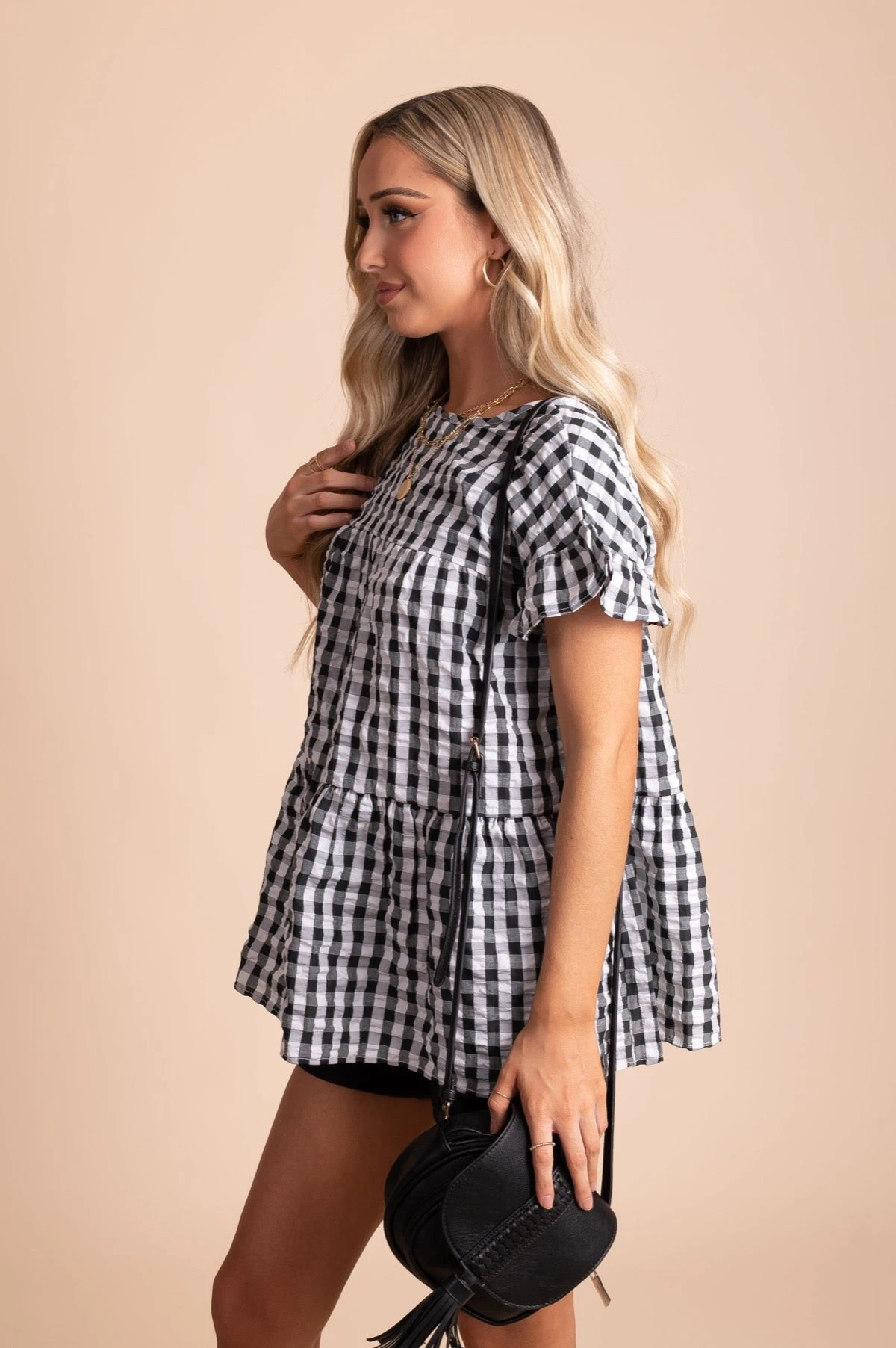 Our new Be Unforgettable Gingham Peplum Top is perfect for everyday wear! This adorable top is perfect for warmer weather. It features trendy gingham print, a flowy, oversized fit, and a gorgeous peplum style hem. It comes in multiple colorways: Black, Pink, Navy Blue, and Yellow. Pair our Be Unforgettable Gingham Peplum Top with skinny jeans and sneakers for a fun everyday look!