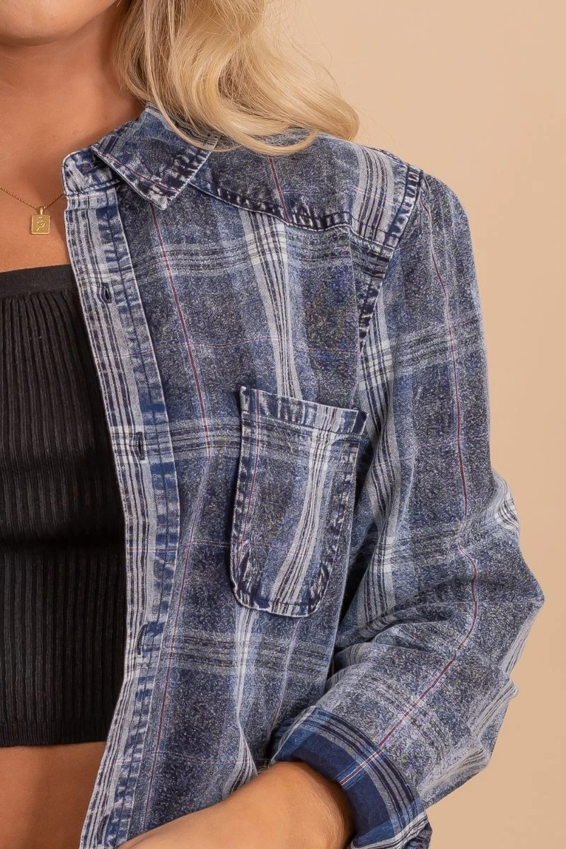 Our Be Who You Are Blue Plaid Top would be so cute for a night at a pumpkin patch, a Sunday stroll, or to throw on in chilly weather!