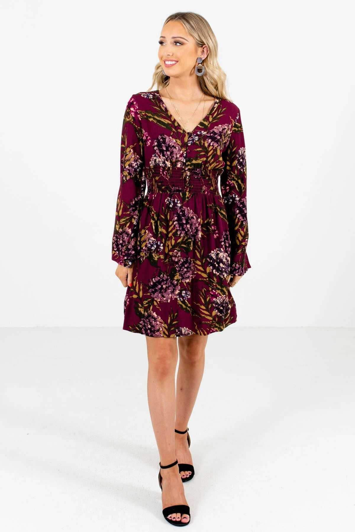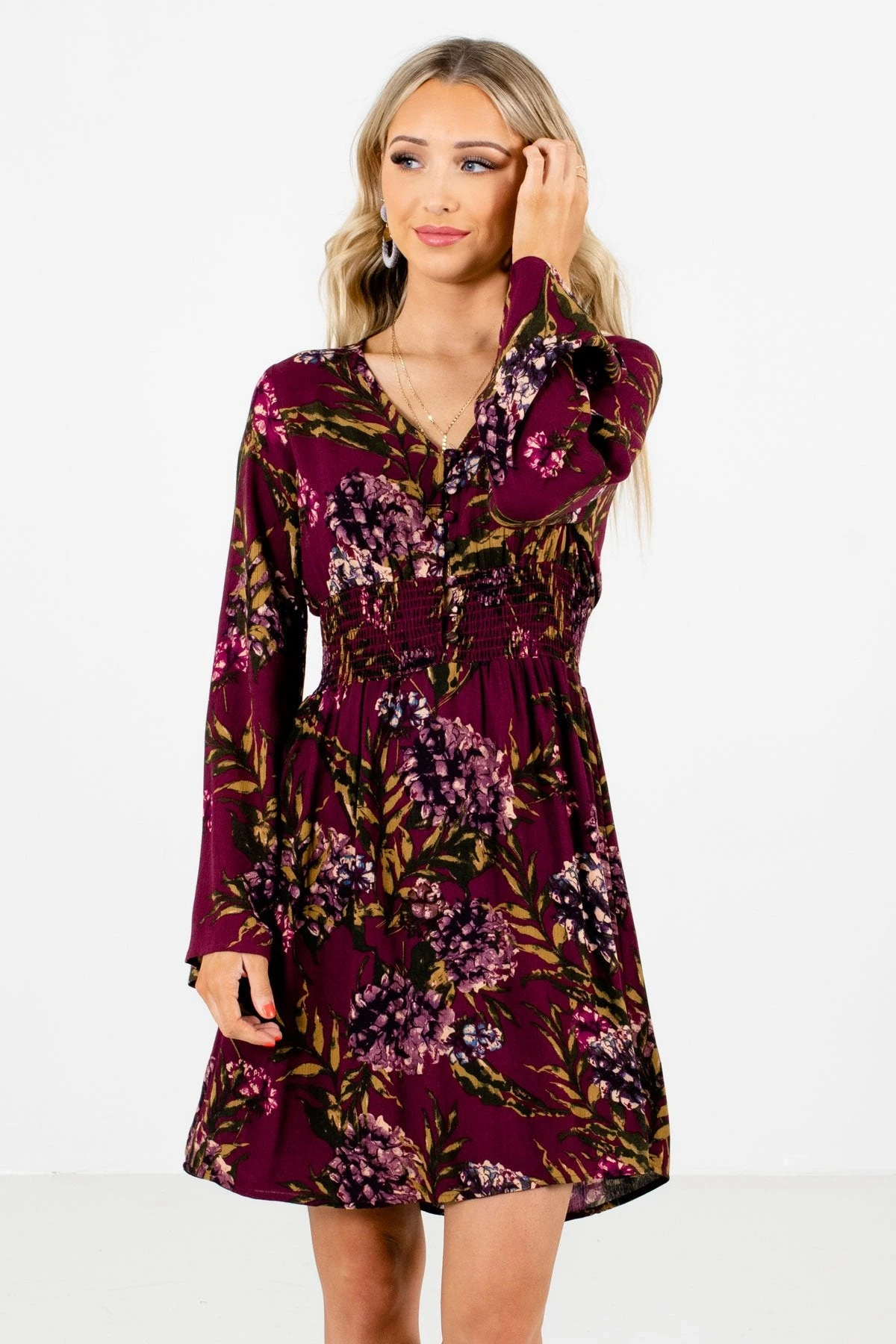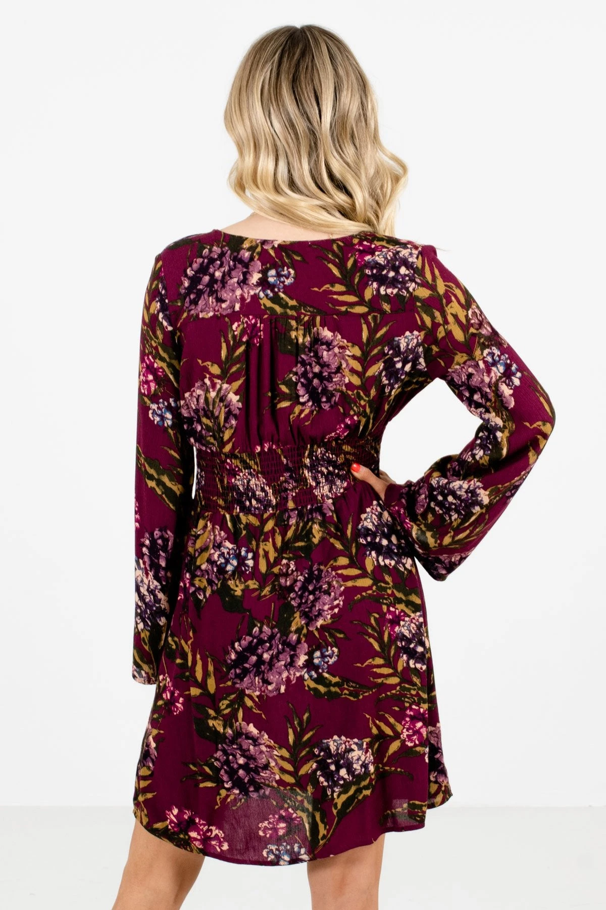 Our new Beat of My Heart Purple Floral Mini Dress is perfect for the upcoming season! This cute mini length dress is purple with a green, peach, and blue floral pattern. It features a button-up v-neckline, smocked waistline, and long sleeves! We’re in love with the lightweight material that creates a flattering silhouette. Pair our Beat of My Heart Purple Floral Mini Dress with brown booties!