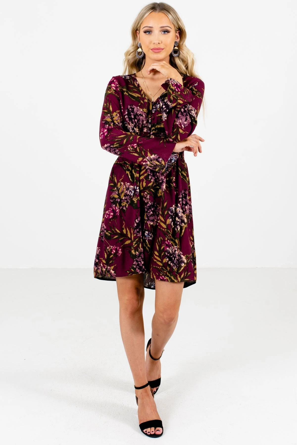 Our Beat of My Heart Purple Floral Mini Dress is composed of 100% Rayon. Hand wash cold. Hang or lay flat to dry. Please do not bleach.