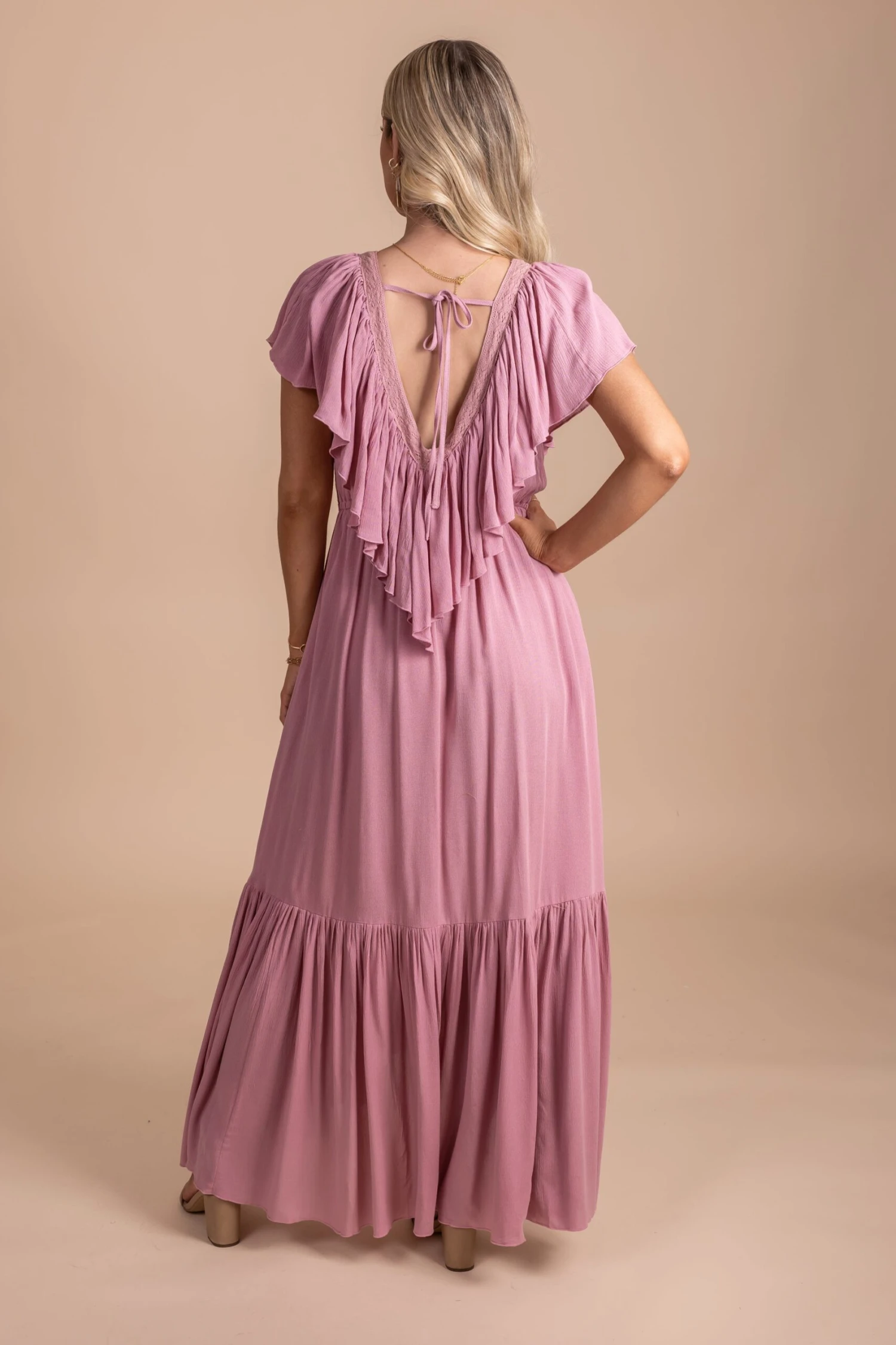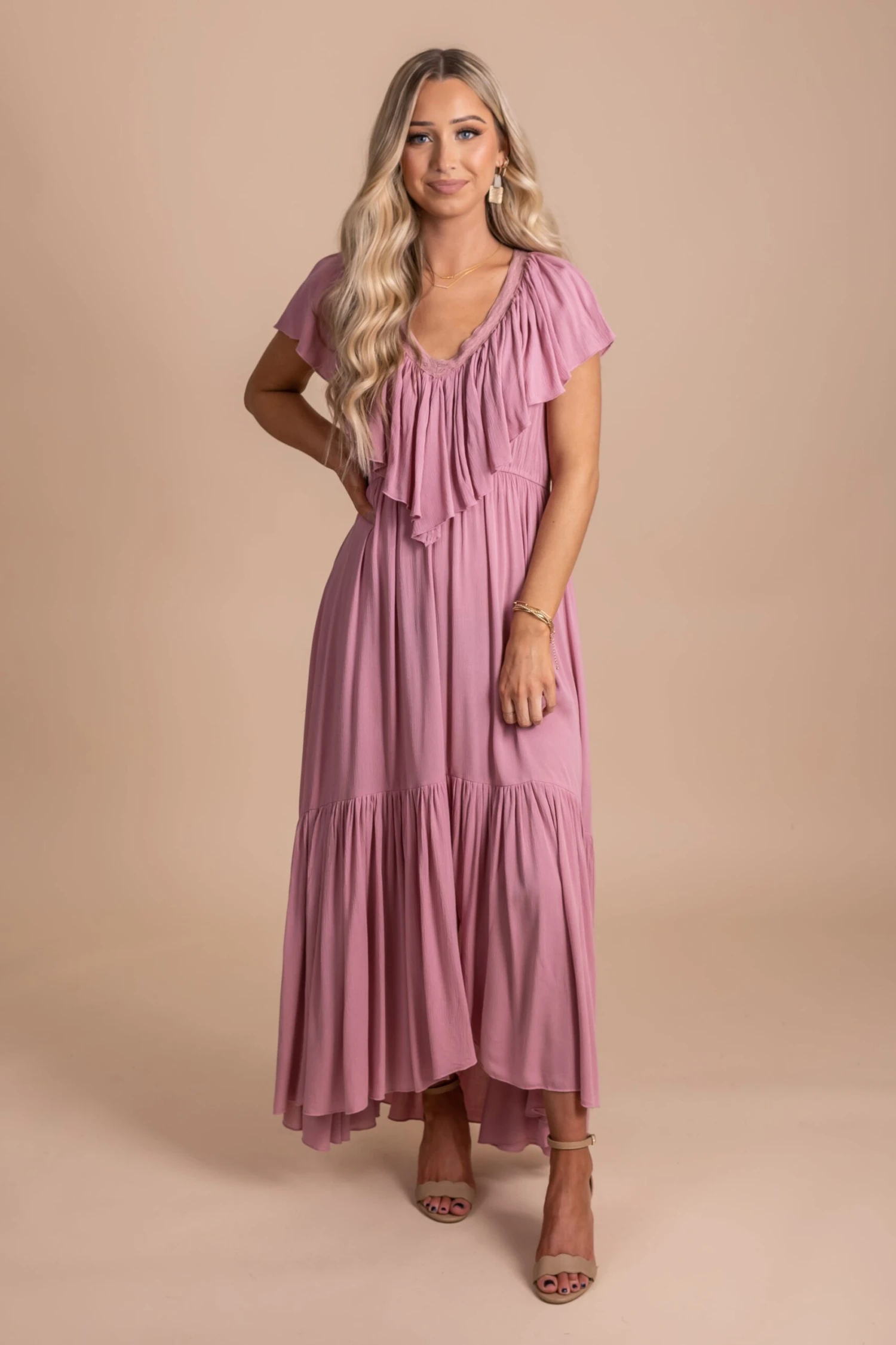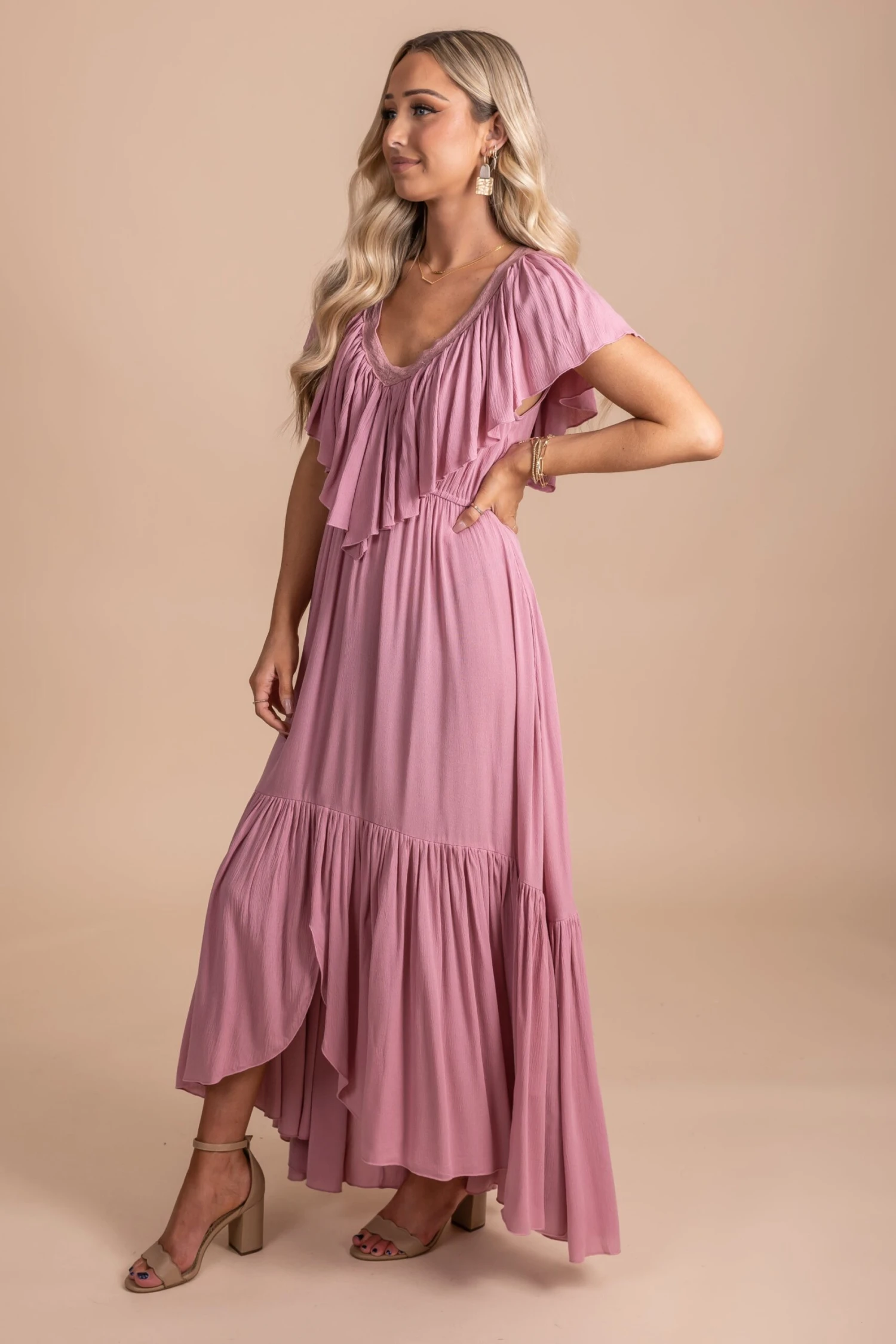 Our Because Of You Ruffled Maxi Dress would be perfect for a family photoshoot, baby shower, or a date night!