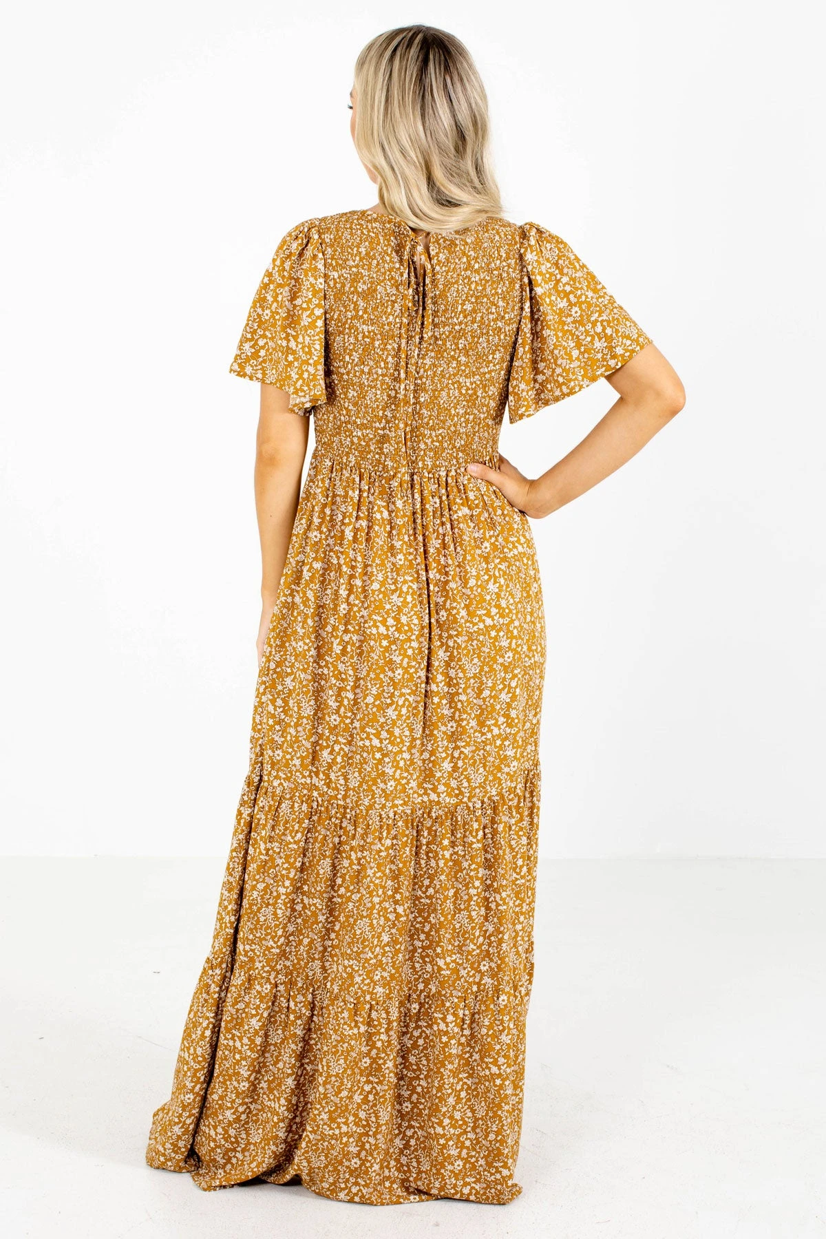 Our Bloom With Grace Mustard Floral Maxi Dress is composed of 100% Rayon. Hand wash cold. Hang or lay flat to dry. Please do not bleach.
