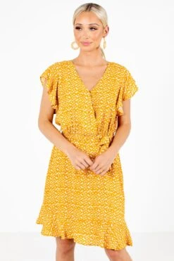 Our new Bold Type Patterned Mini Dress is so fun to wear! This mini length dress features an abstract pattern. We’re in love with the faux wrap bodice, keyhole back, and waist tie detail! The ruffled accents on the sleeves and hem are right on trend for the upcoming season. The full lining adds the perfect finishing touch! Pair our Bold Type Patterned Mini Dress with sleek black heels to recreate our model’s gorgeous look!