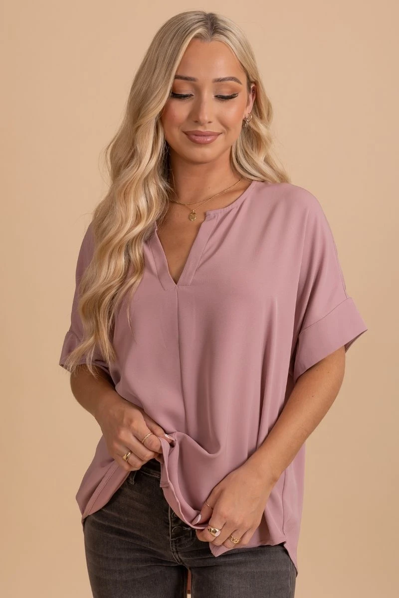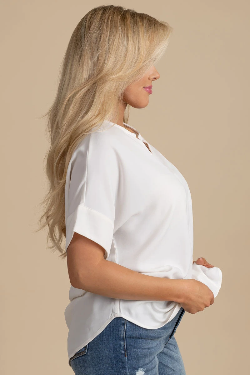We’re in love with our new Born for This Short Sleeve Blouse and all of its adorable details! This cute blouse features a split v-neckline, cuffed sleeves, and a subtle high-low hem. We’re obsessed with the high-quality material that makes it comfortable and easy to wear! Pair our Born for This Short Sleeve Blouse with your favorite jeans and heeled sandals for a cute, everyday look! Try wearing it with gray slacks for your next day at the office.