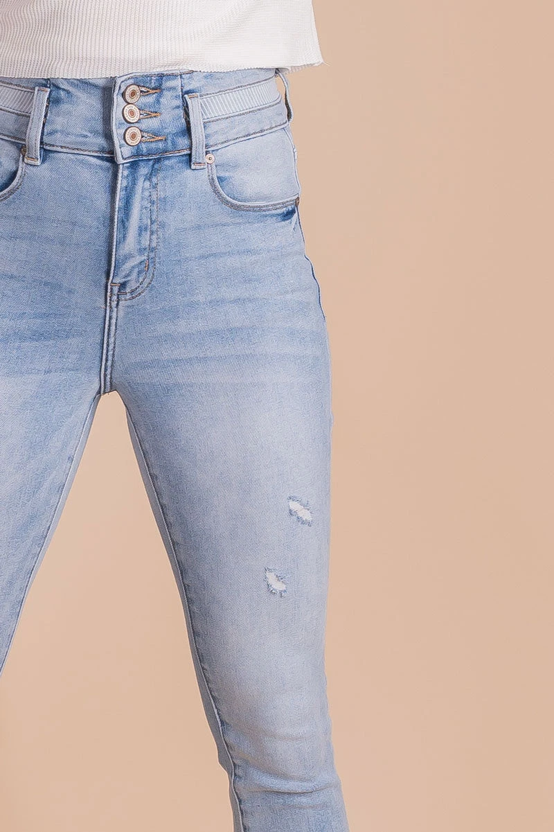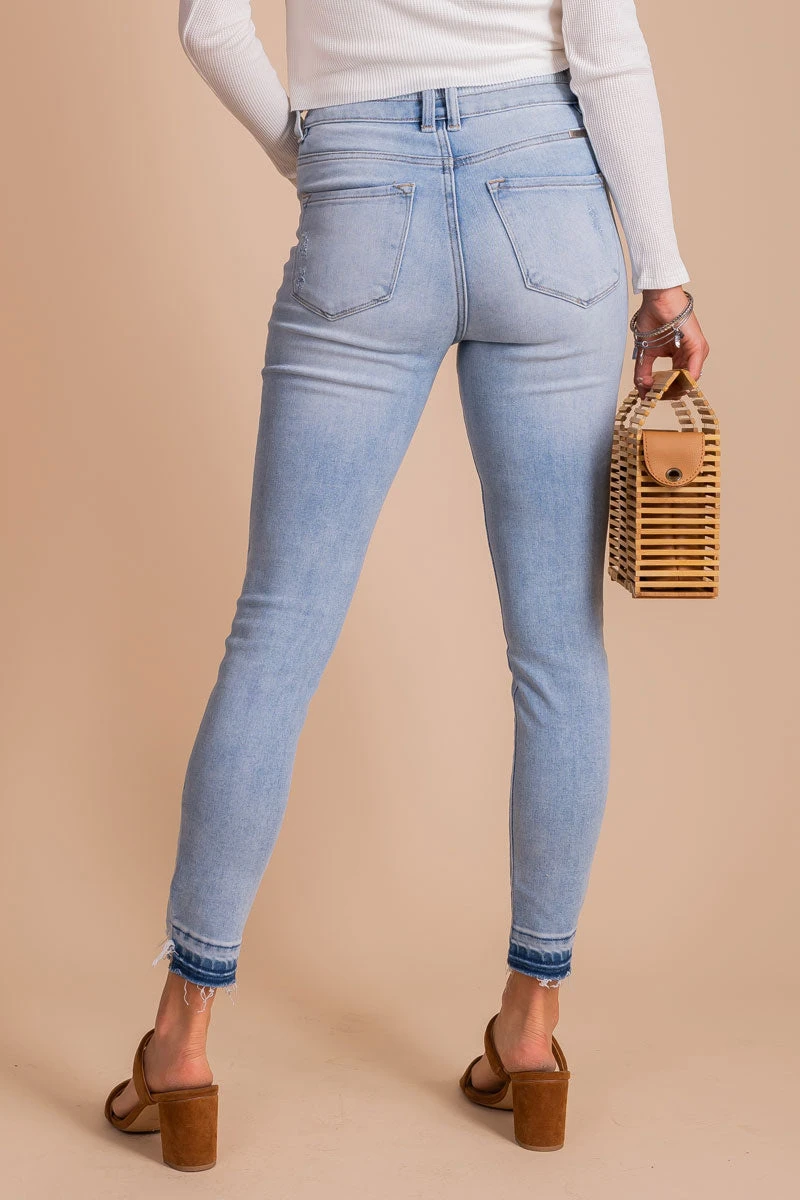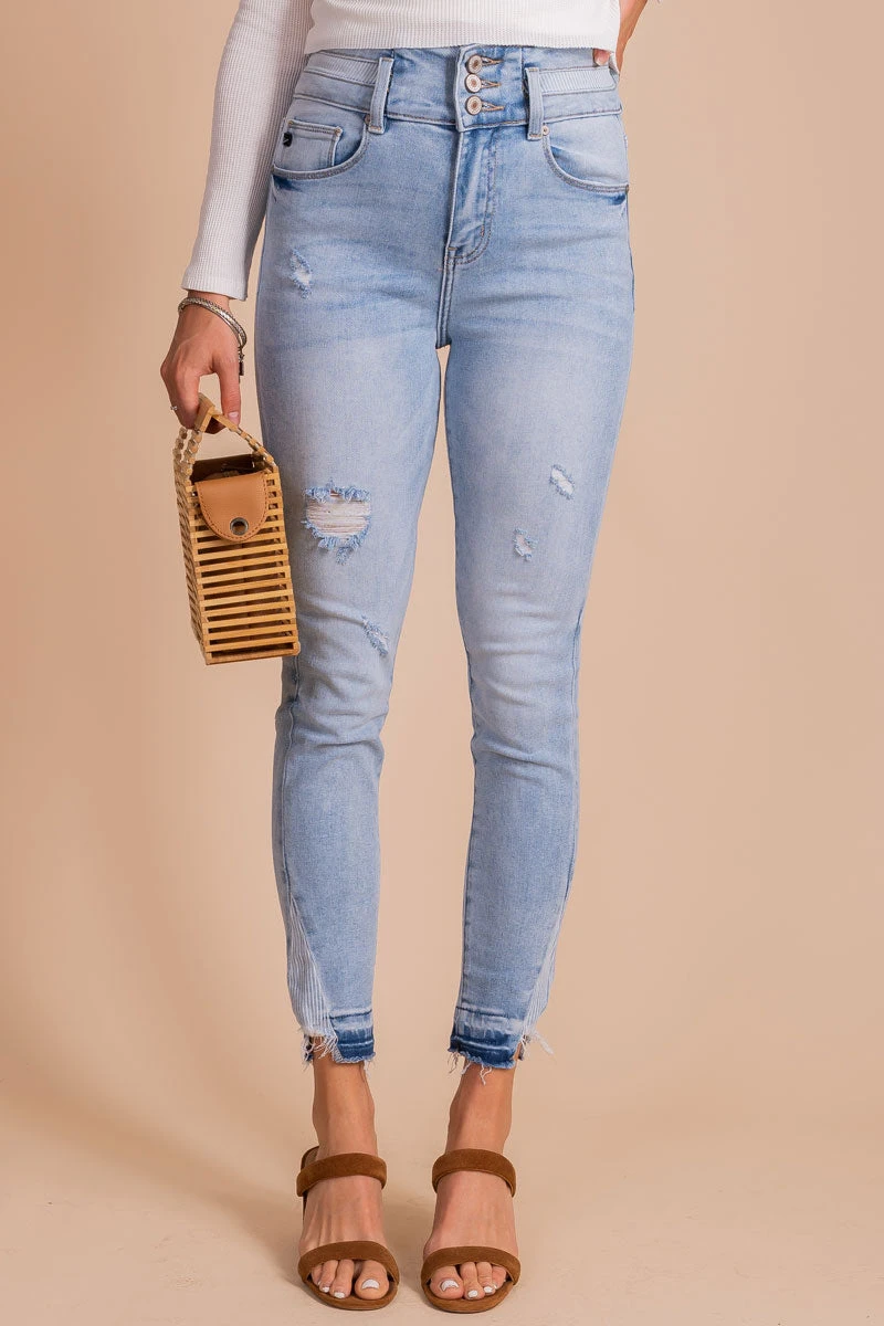 You won’t be able to stay away from our new Can’t Stay Away KanCan Denim Jeans! These cute jeans feature a light wash denim material, mild distressed detailing, and a button fly! The best part of these KanCans is the striped detailing on the waist and ankles!