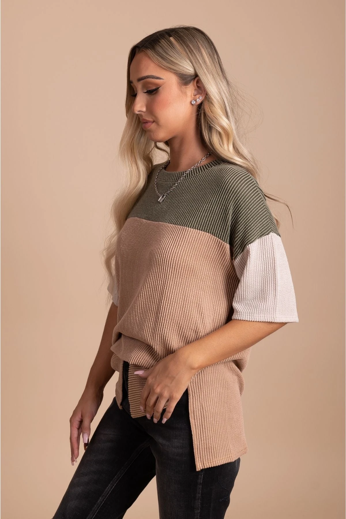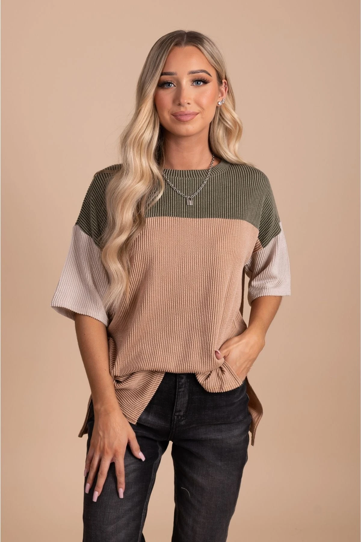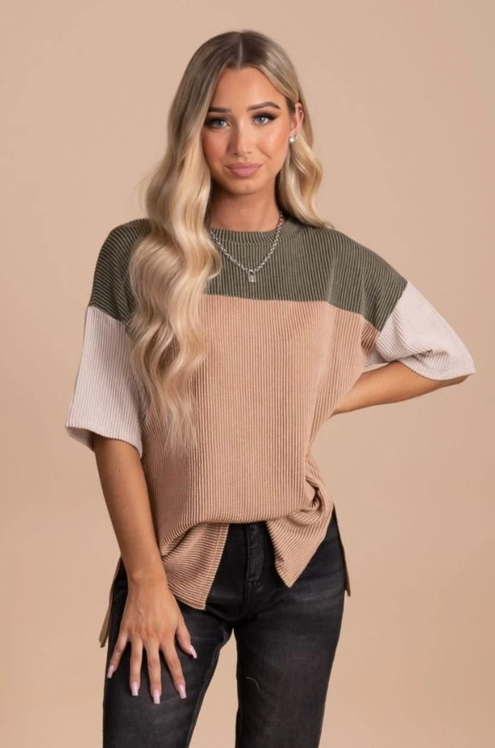 Our Casual Friday Ribbed Color Block Top would be perfect for a date night out or a spring girls trip!