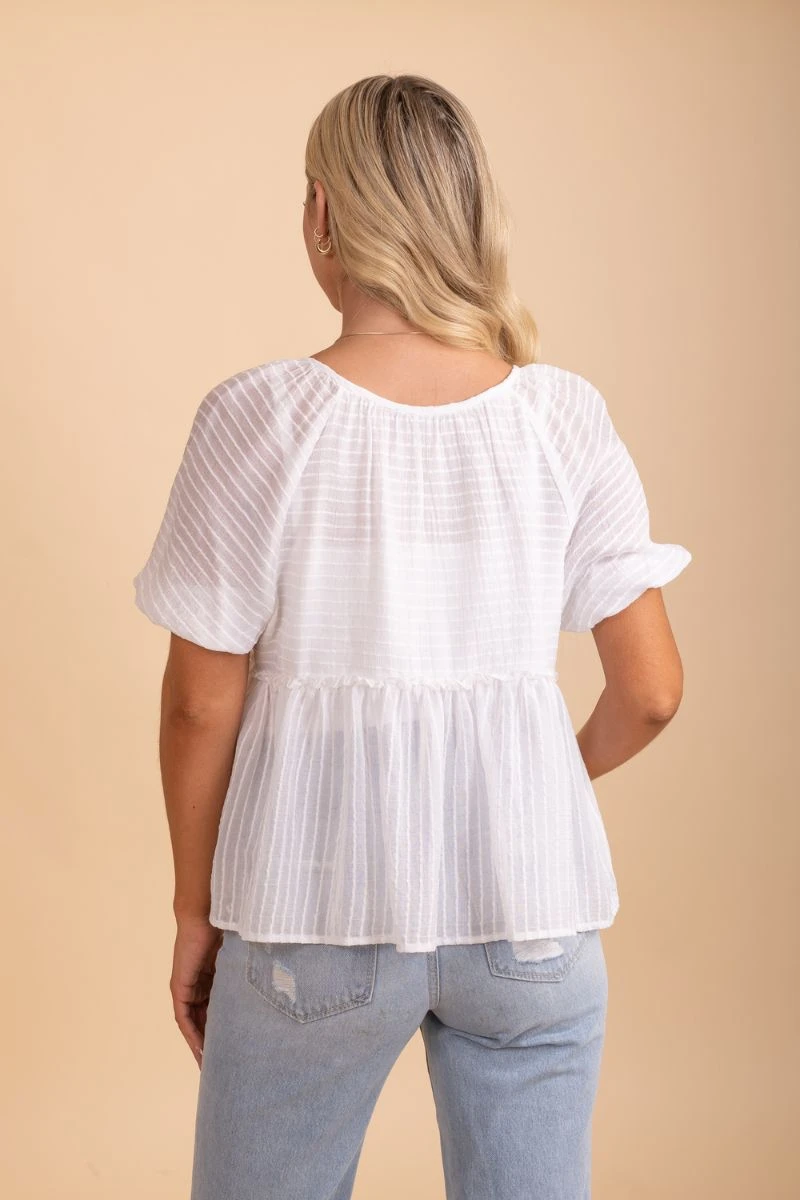 Our Close To My Heart Striped Peplum Top would be perfect for a casual day out, a summer photoshoot, or a date night out!