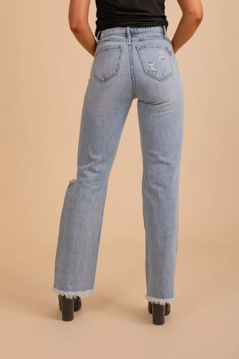 Our new Denim Blue Skies Distressed Jeans are an absolute must-have! These jeans are composed of light wash, high-quality denim. We’re in love with all the little details! The distressed detailing and pockets perfectly complete the look. We are in love with the high rise skinny fit with the flare!