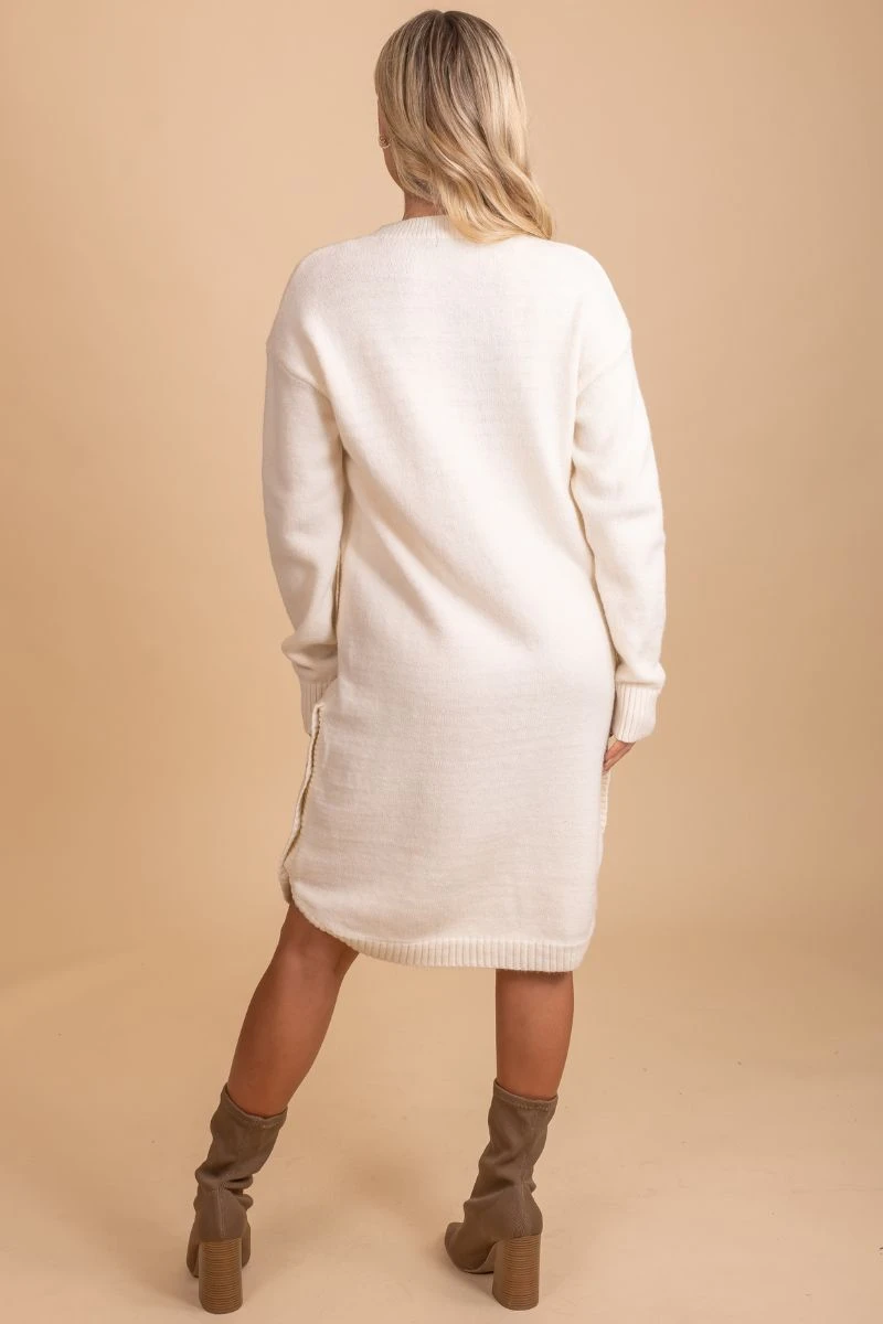 Our new Falling Fast Sweater Dress will perfectly complete your wardrobe! This gorgeous dress comes in a solid white color. It features a round neckline, button detailing, and long sleeves. Our favorite part of this dress is the high-quality, knit material! TheĀ relaxed, comfortable fit adds the perfect finishing touch. TheĀ Falling Fast Sweater Dress is perfect for wearing on aĀ chilly day!