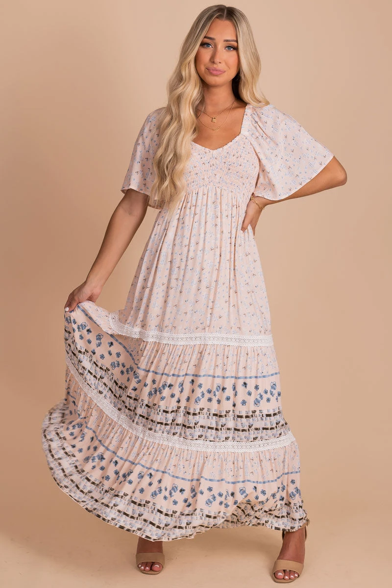 Pair our Flower Fields Smocked Maxi Dress with your favorite heels to create a beautiful outfit!