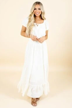 OurĀ Forever In Love Maxi DressĀ is suchĀ a gorgeousĀ piece! This dress is an off-white cream color that’s so on trend this season. It features an attached lining so you will be so comfortable in it. Our favorite part of this dress is that you can wear it on or off the shoulder! You’ll feel so beautiful in this dress! Pair it with strappy block heels to recreate our model’s look!