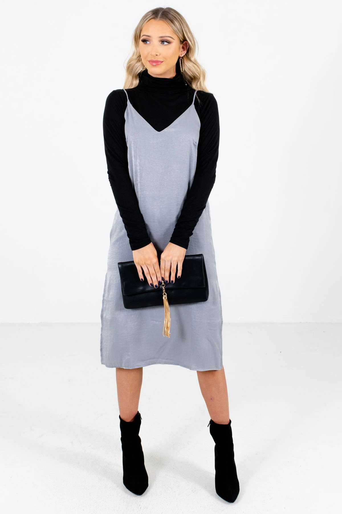 Every girl needs a fun dress in her wardrobe and our new Girls Night Gray Satin Knee-Length Dress is a must-have! This beautiful piece is a solid light slate gray color. It features a v-neckline, spaghetti straps, and side hem slits! We’re in love with the satin like material and that’s so trendy right now. The partial lining adds the perfect finishing touch! Pair our Girls Night Gray Satin Knee-Length Dress with sleek black heels to create a look that’s perfect for a night out on the town!