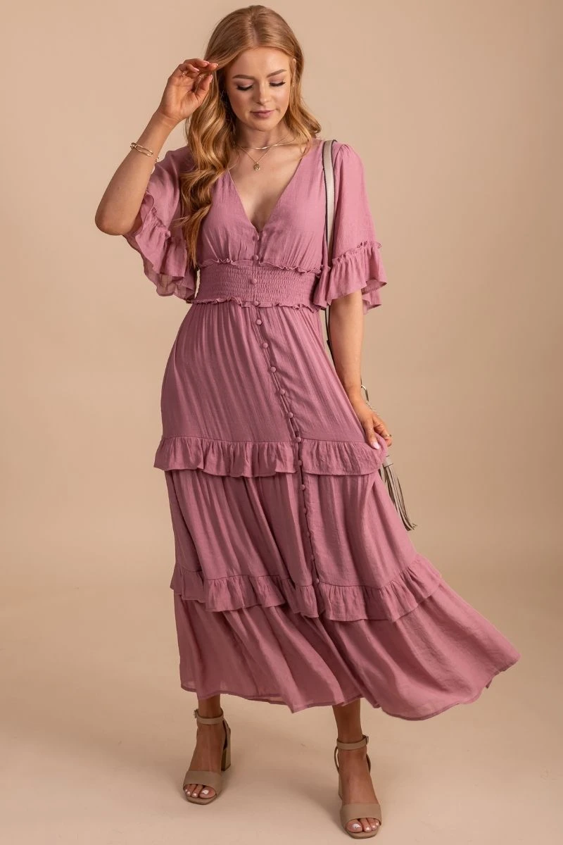 Our Hello Lover Tiered Maxi Dress would be perfect for a bridal shower, engagement photoshoot, or special occasion.