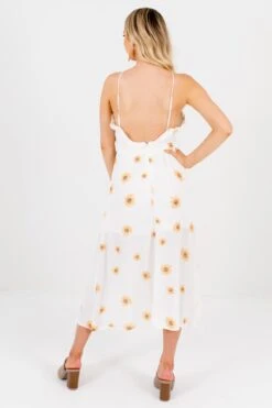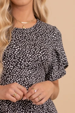 The sheer flutter sleeves, long maxi length, smocked waistline, and tiered details make this dress so pretty! The lightweight, high-quality material creates a comfortable and flattering silhouette. The button front and v-neckline create the perfect finishing touches! It has a partial interior lining that reaches the knees.