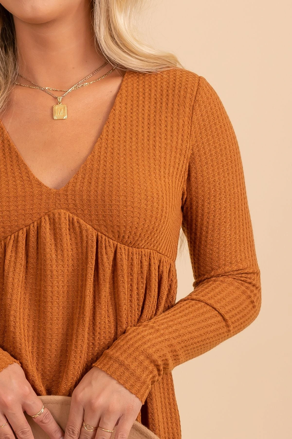 Our Here With You Long Sleeve Waffle Top is a closet staple! This cute top features a comfy, stretchy waffle knit material, making this top perfect for the upcoming fall season! The long sleeves, v-neckline, and ashy brown color all make this top so trendy and cute! Pair your Here With You Long Sleeve Waffle Top with your favorite jeans or leggings for a cute and comfortable outfit this season!