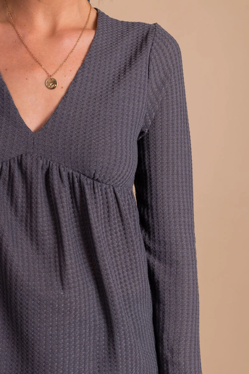 Our Here With You Long Sleeve Waffle Top would be perfect for a cute back to school outfit or a date night out!