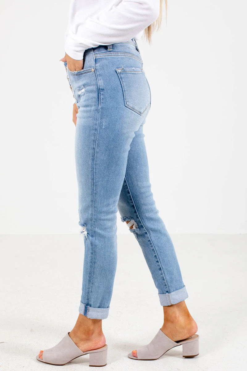 Our Hold You Tight Denim KanCan Jeans will be your new go-to jeans! We’re in love with the cuffed rolled hem, distressed detailing, and perfect medium wash! The lightweight, high-quality material creates a comfortable and flattering fit. Pair your Hold You Tight Denim KanCan Jeans with your favorite top and sneakers for a casual day-to-day look!