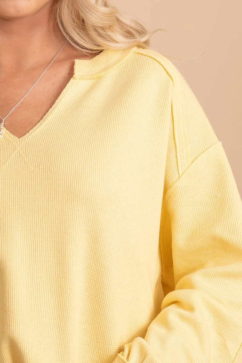 Our new I Can And I Will Long Sleeve Pullover will be the perfect addition to your wardrobe! It features soft, knit material in the cutest yellow and light green color. We’re in love with the long sleeves, flattering fit, and v-neckline! The comfortable, oversized fit is great for layering.