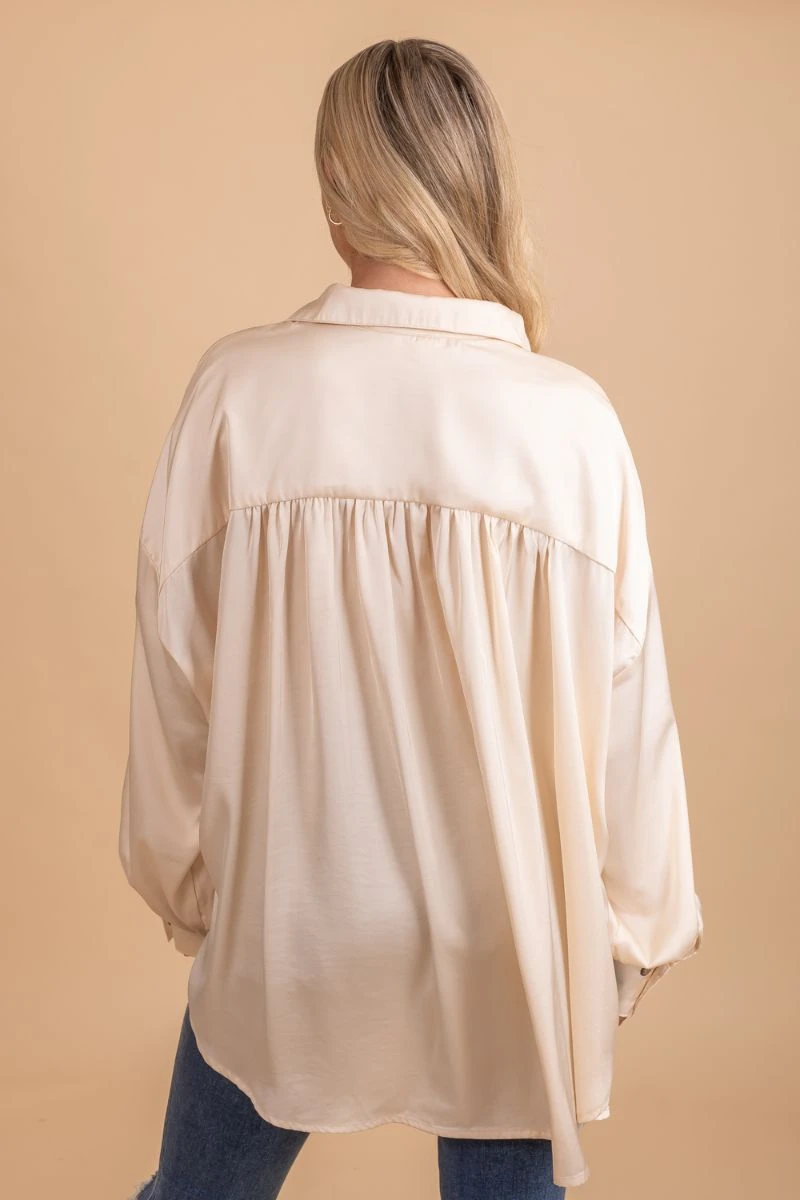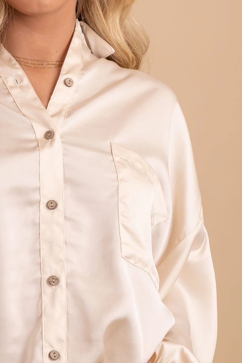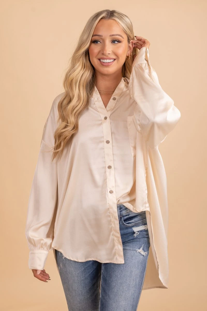 Our Just Be You Long Sleeve Button Up Top is the top you will be obsessed with this season! You’ll love the off white color, button-up closure, and trendy oversized fit! The lightweight, high-quality material creates a comfortable and flattering silhouette, and will keep you looking trendy all year long!Â