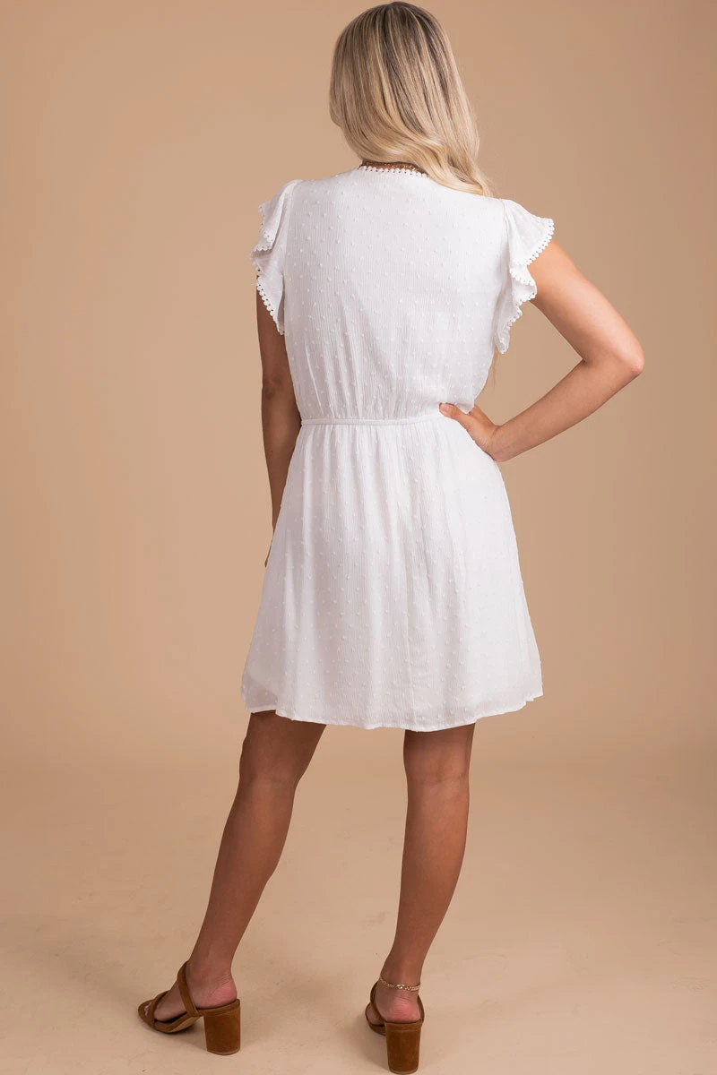 You’ll look and feel adorable in our new London Bridge Cream Mini Dress! This mini-length dress is a solid cream color that’s so easy to style. It features a v-neckline, crochet detailing, and an elastic waistband! The textured material is so unique, and the full lining makes this dress comfortable and easy to wear. Pair our London Bridge Cream Mini Dress with platform sandals and a fun-colored headband!