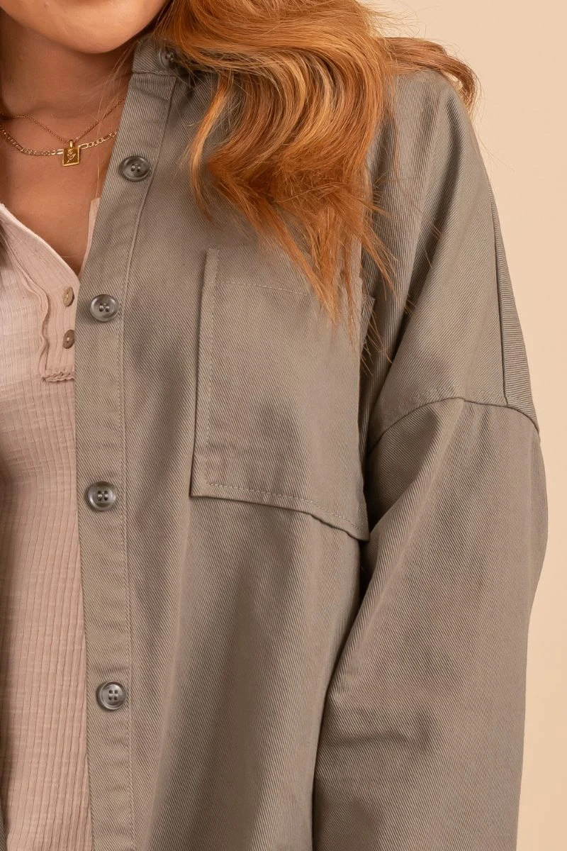Pair our Love More Green Button Up Jacket with a cute dress and boot heels or dress it down with a cute sweater, denim jeans, and ankle boots!
