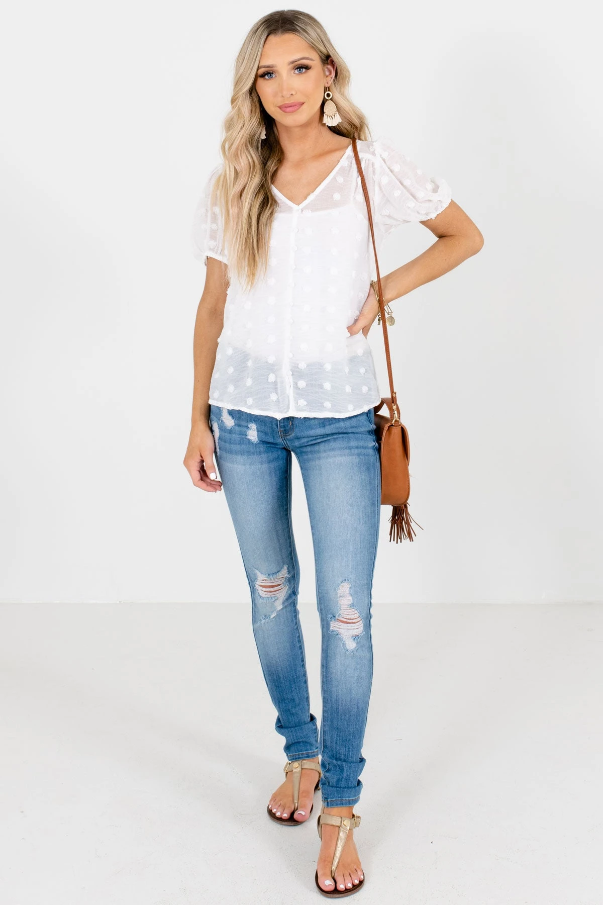 Create the perfect spring outfit with our new Loving It Textured Blouse! We’re in love with the lightweight, polka dot textured material that’s right on trend for the upcoming season! It features a v-neckline, high-low hem, and back pleated accents. Wear our Loving It Textured Blouse with a button-up denim skirt and your favorite sandals!