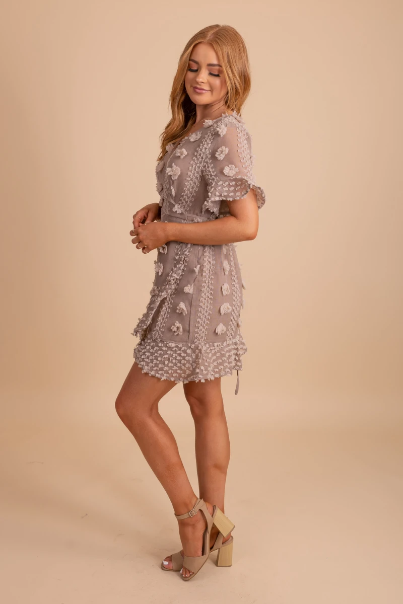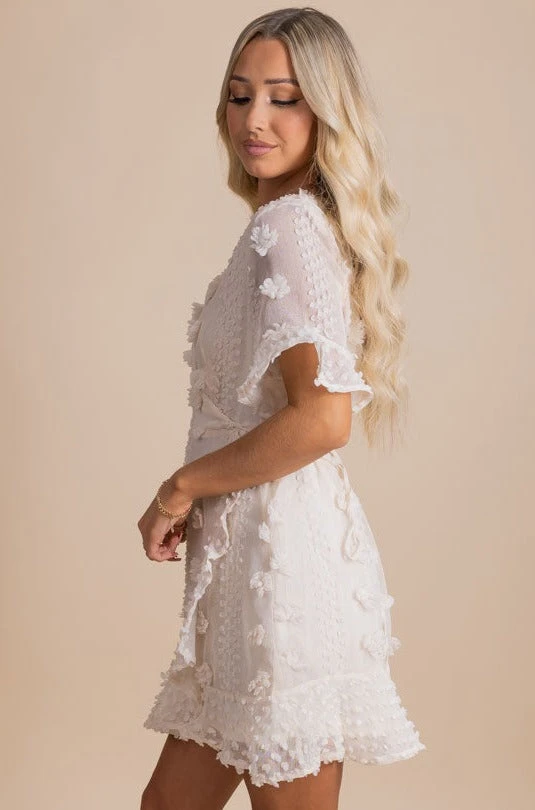 Pair our Moving On Textured Mini Dress with your favorite heeled sandals to create a gorgeous outfit! This would be a perfect bridal shower dress, engagement photo dress, or wedding guest dress.