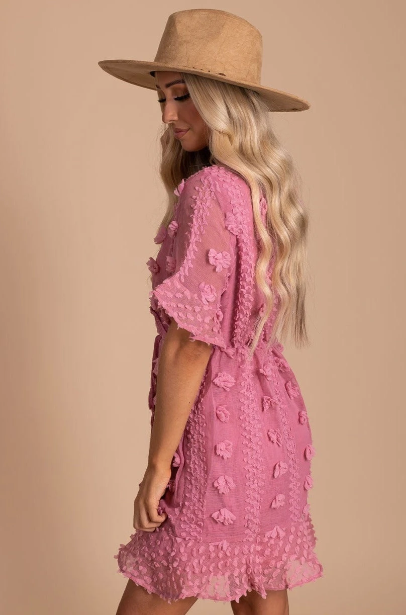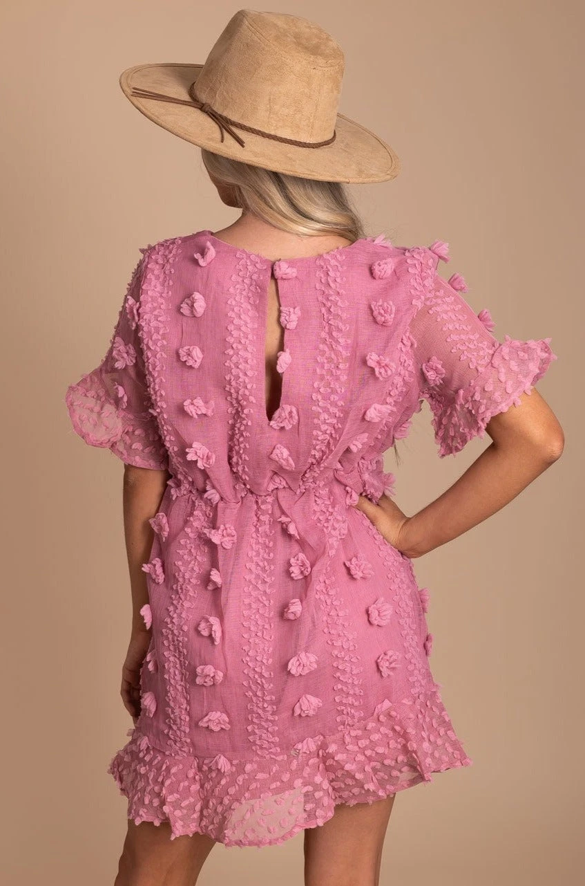 Fall in love with our Moving On Textured Mini Dress and all of its adorable details! This mini dress features high-quality material with a unique swiss dot texture. We’re obsessed with the keyhole back, waist tie detail, and ruffled sleeves! The full lining and elastic waistband work together to make this dress comfortable and easy to wear.