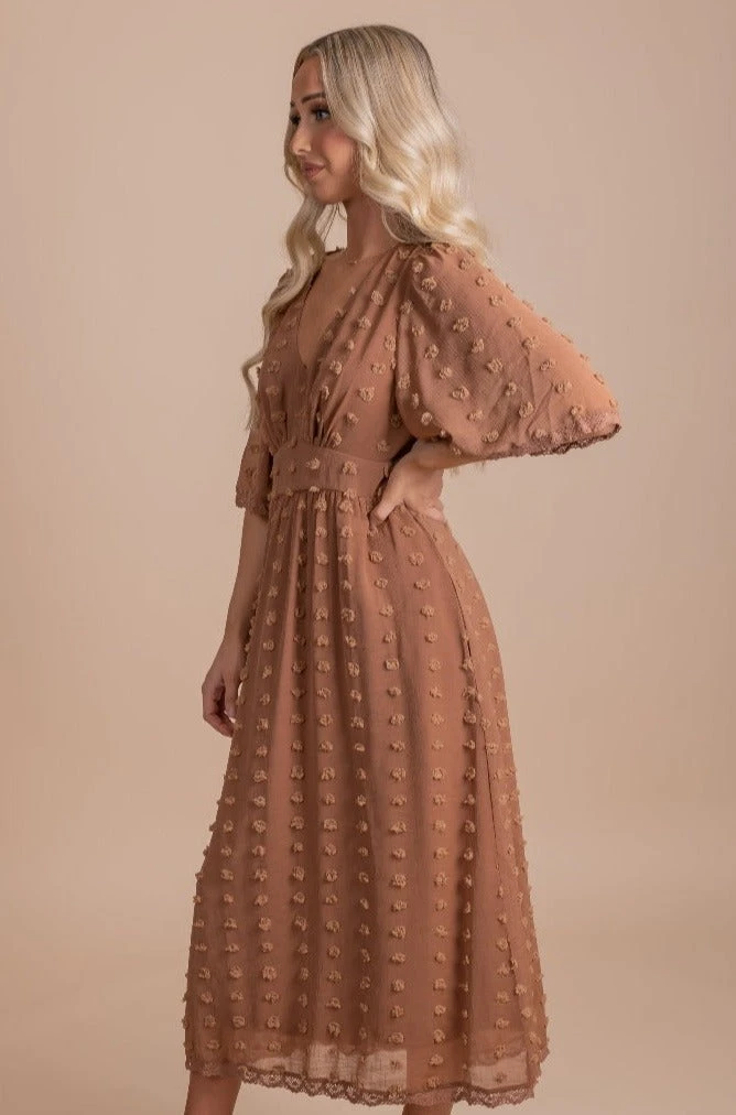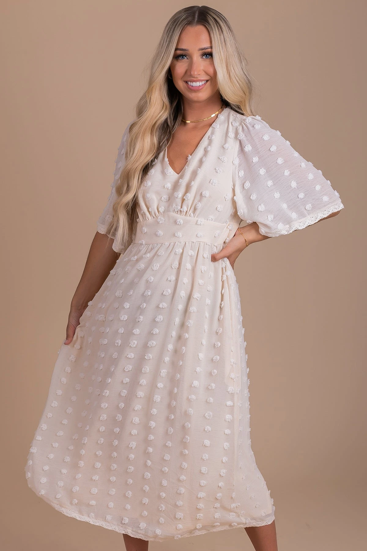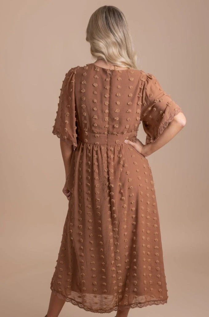 You’ll look and feel beautiful in our new My Moment Midi Dress! This adorable dress features lightweight, trendy swiss dot material. We’re in love with the v-neckline and back zipper! The midi length perfectly completes the look. Pair our My Moment Midi Dress heeled sandals to create a cute look for your next date night!