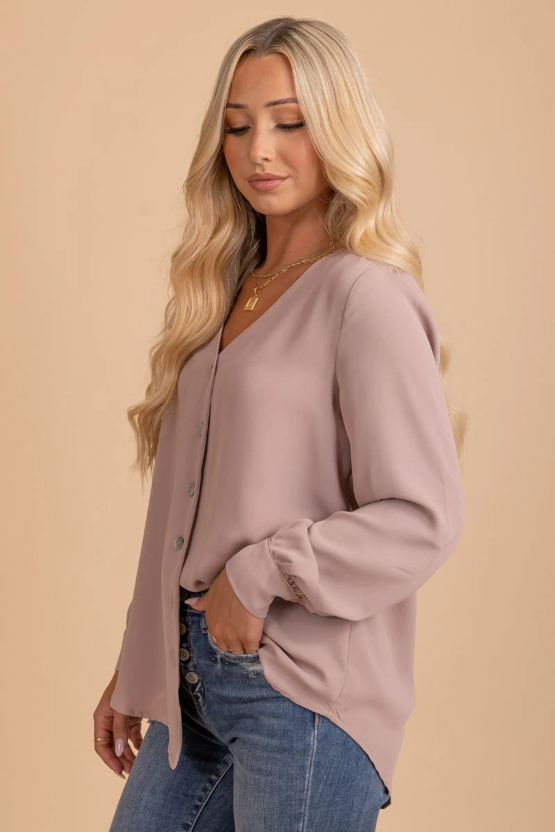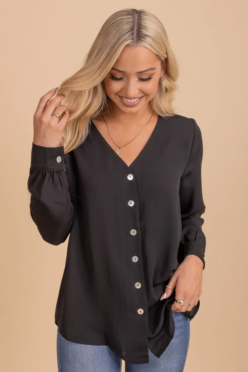 Our new Never Say Goodbye Blouse can be dressed up or down for any occasion! This cute top comes in multiple color options. It features a v-neckline, button-up front, and high-low hem. We’re in love with the high-quality, lightweight material that creates a comfortable and flattering fit! Pair our Never Say Goodbye Blouse with slacks for a day at the office, or try wearing it with distressed skinny jeans for an everyday look!