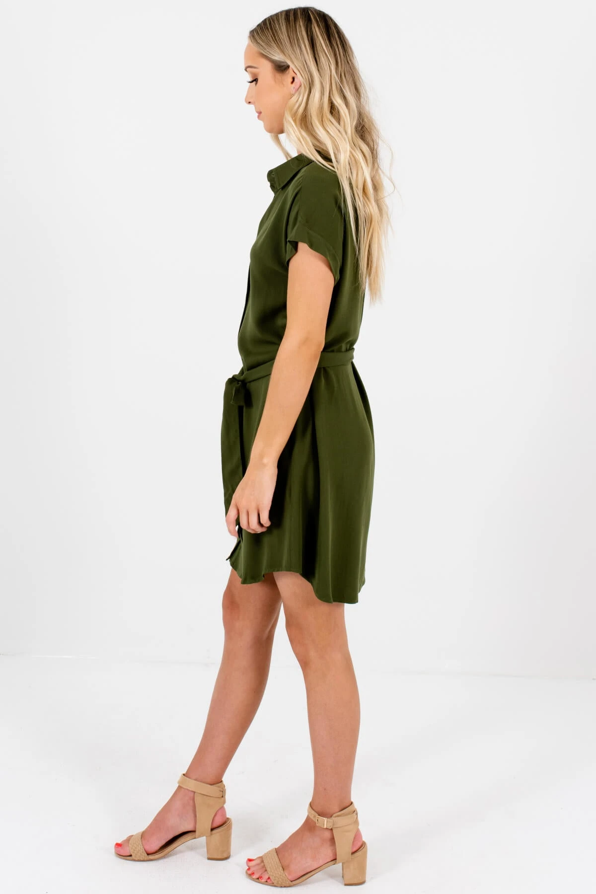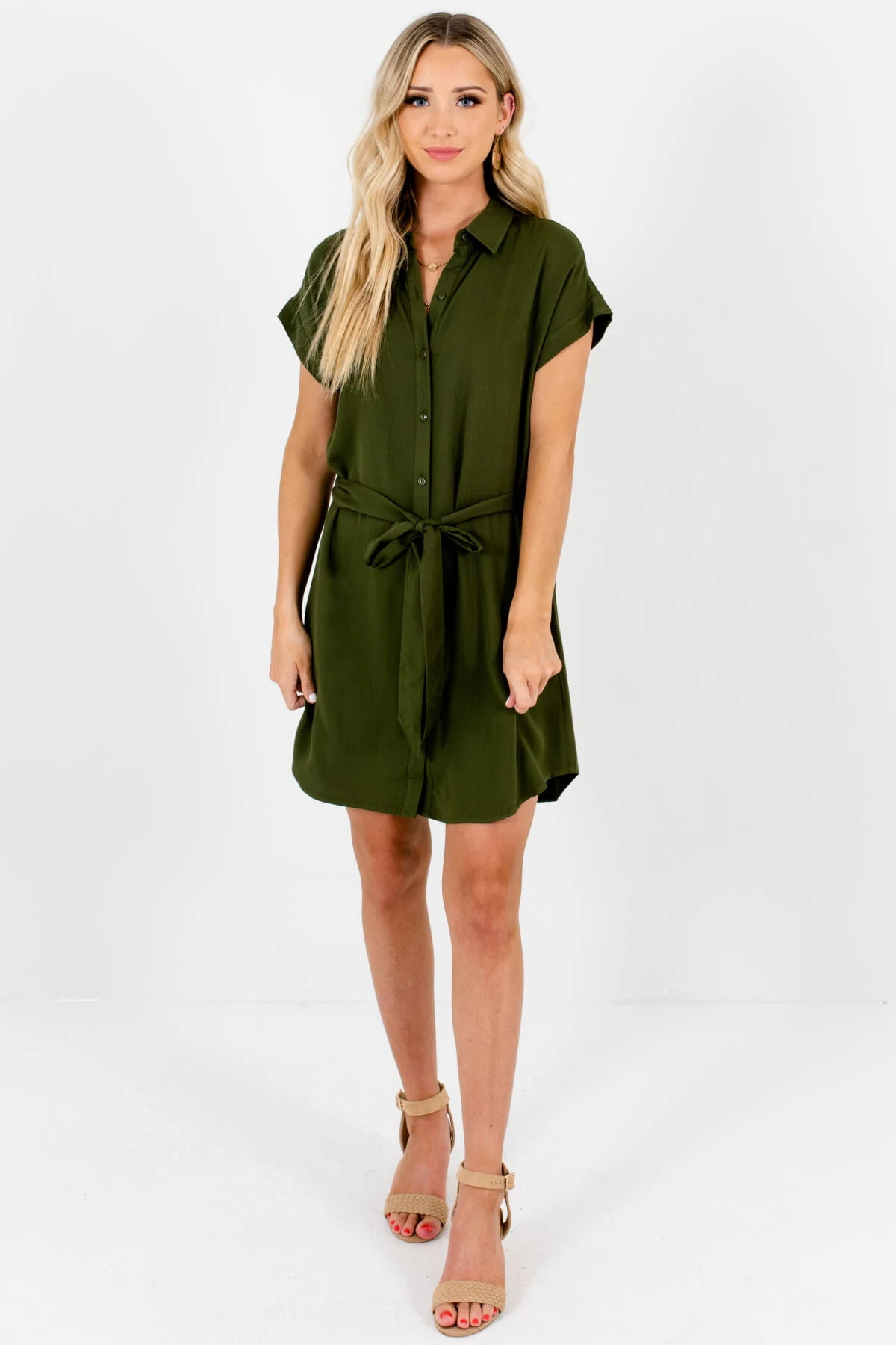 Now’s the perfect time to invest in a versatile dress, and nothing beats our new No Matter What Olive Mini Dress! This olive green dress features a button-up front, complete with a shirt collar. You’ll love the lightweight material and the waist tie detail that make this dress so easy to wear. Pair the No Matter What Olive Mini Dress with animal print heels for the perfect outfit!