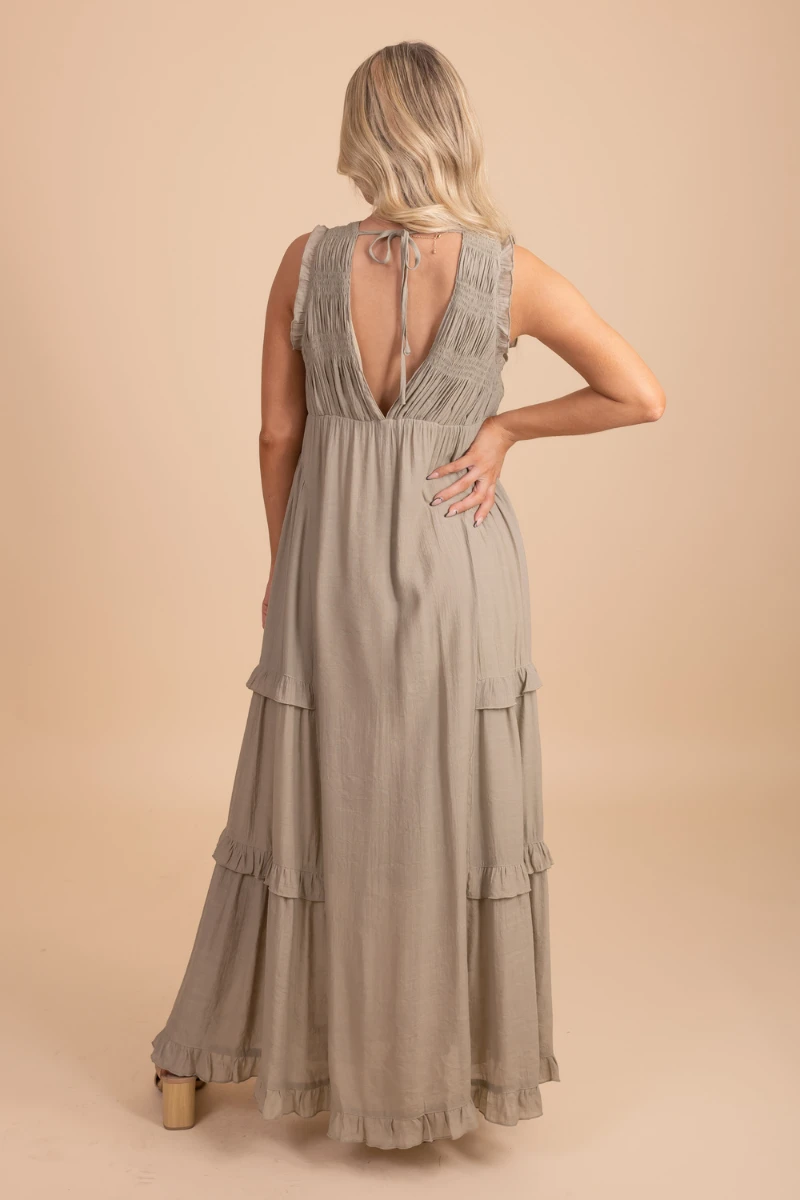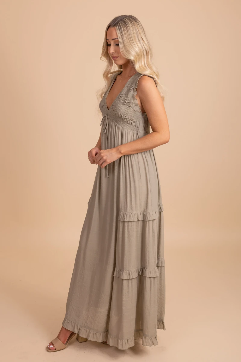 Our Now Until Forever V-Neck Maxi Dress would be perfect for a photoshoot, date night out, or as a bridesmaid dress!