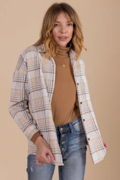 Pair your One With Nature Plaid Button Up Top over a turtleneck top to recreate our model’s outfits!