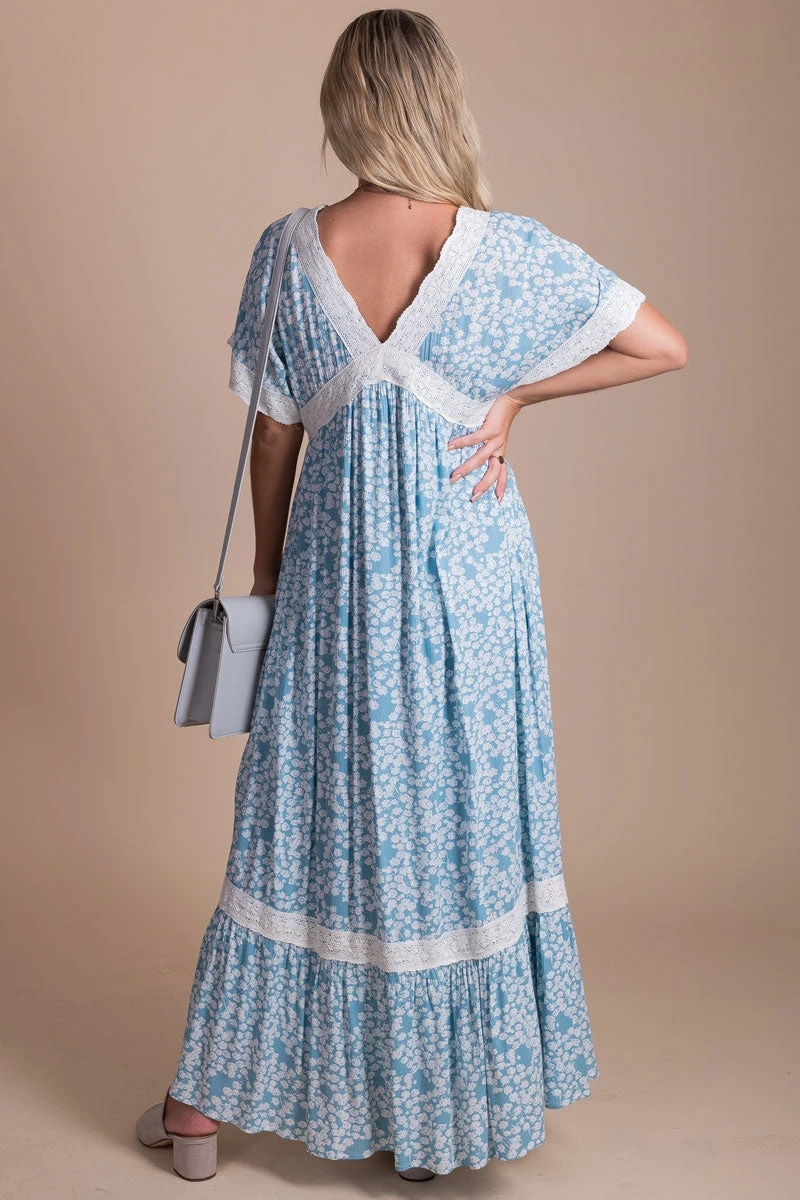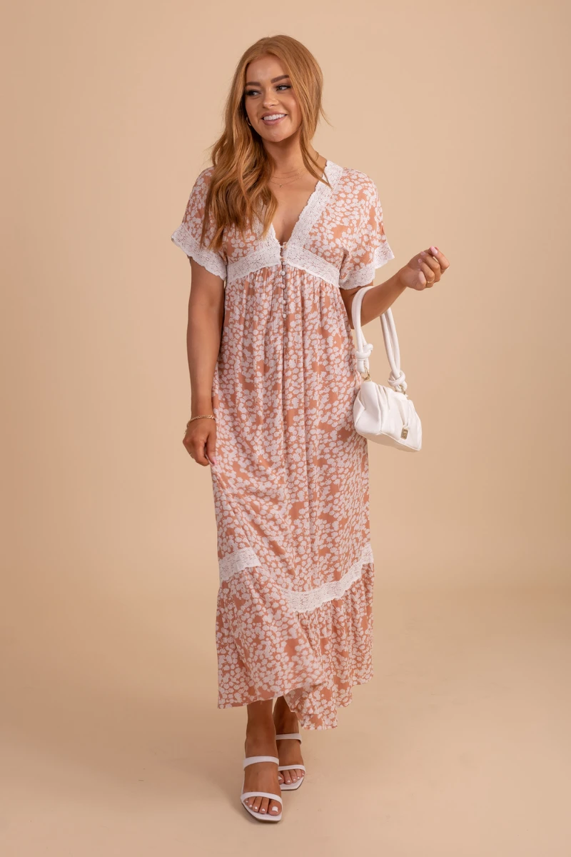 Our new Only Yesterday Floral Maxi Dress is an absolute must-have for the upcoming season! This maxi dress features a beautiful floral pattern. We’re obsessed with the v-neckline, button details, and lace accents! The button-up bodice, and long length work together to make this dress comfortable and easy to wear. Pair our Only Yesterday Floral Maxi Dress with your favorite heeled sandals for a fun summer look!