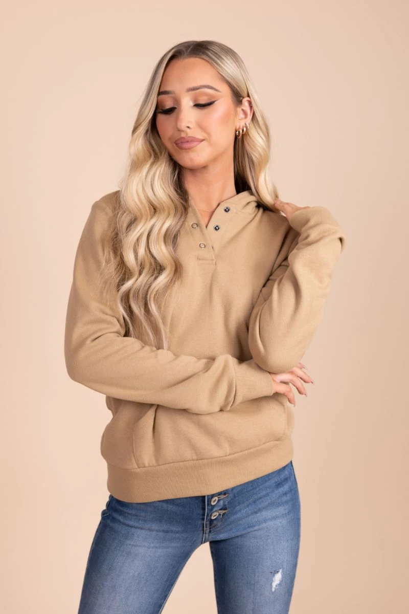 You’ll be constantly reaching for our Snowball Fight Pullover Hooded Sweater! We’re obsessed with the two color options, hood, and front pocket! The snap button v-neckline adds such a cute finishing touch! Pair your Snowball Fight Pullover Hooded Sweater with your favorite jeans and booties to create a cute fall outfit. Add a vest overtop to transition into winter!