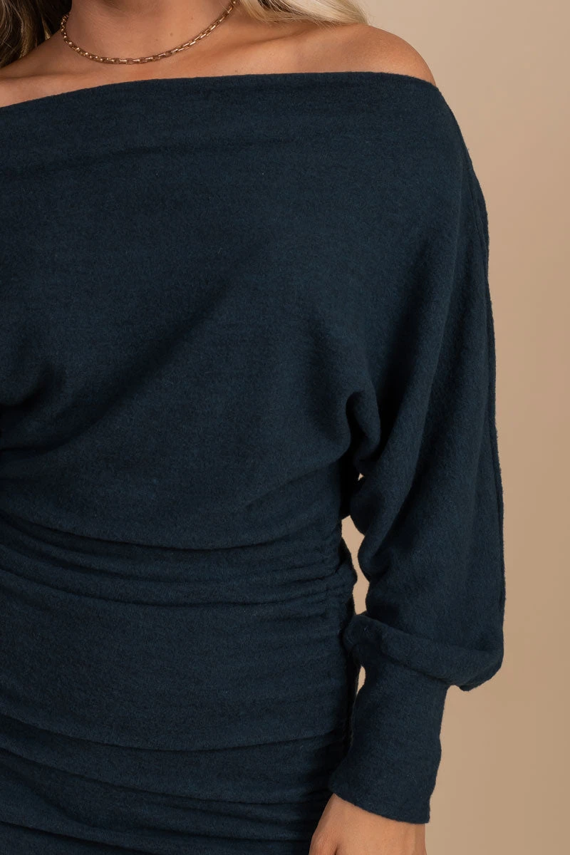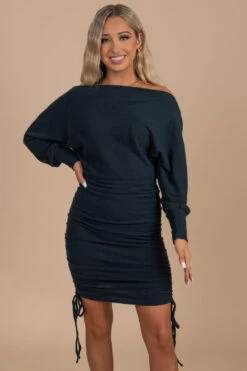 You’ll fall in love with our new Secret Admirer Off-Shoulder Mini Dress! This dress features a mini length with cinched side details. The long sleeves and boat neck design makes this dress so unique and fun! Wear this dress one both shoulders, one shoulder, or completely off-shoulder! Pair your Secret Admirer Off-Shoulder Mini Dress with your favorite heels to create a cute date night outfit! - Our Secret Admirer Off-Shoulder Mini Dress would be perfect for a holiday party, fancy dinner, or any special occasion!