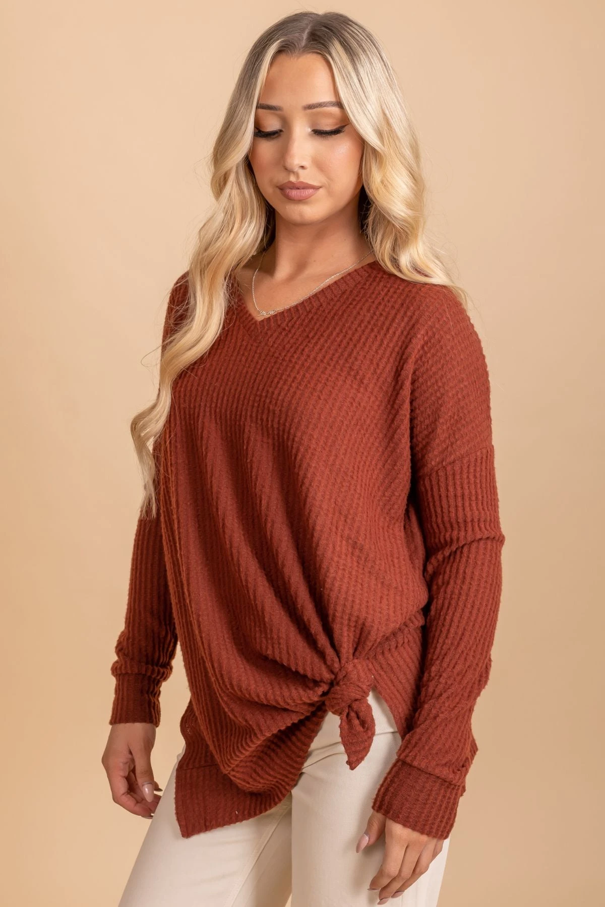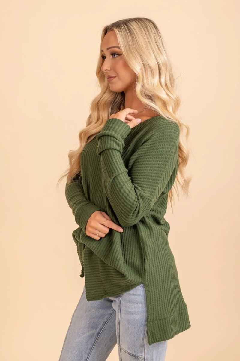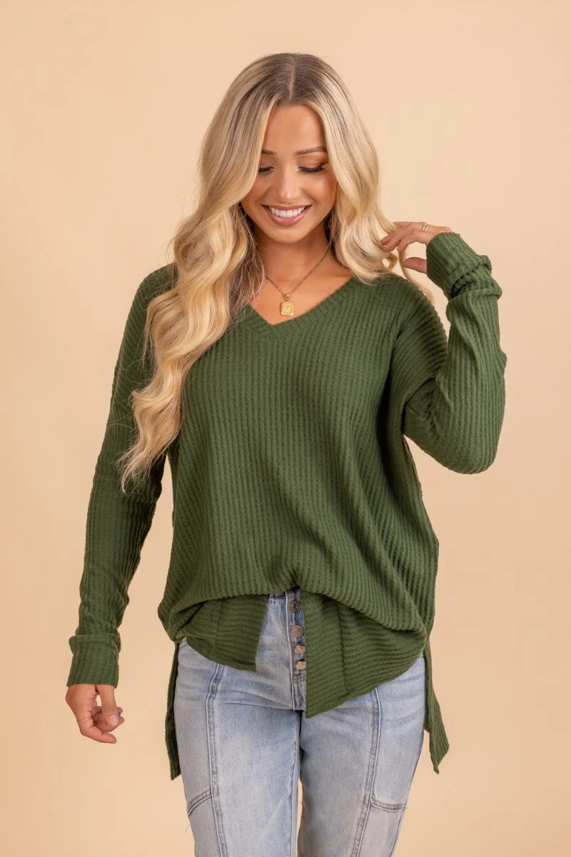 - Our Spiced Cider V-Neck Waffle Top would be perfect for a fall date night out, cozy evening in, or any special occasion!