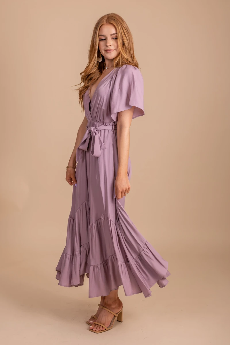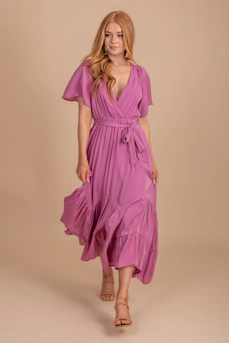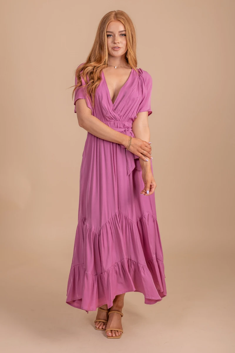 Our Sweetest Kiss Maxi Dress is so stunning! This dress is a maxi length and features a tie waistband, v-neckline, and tiered skirt. It has a partial lining to keep it flowy and comfortable. Wear our Sweetest Kiss Maxi Dress on your next romantic getaway.