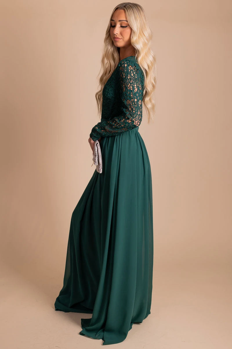 Our To The Moon and Back Lace Maxi Dress would be perfect for a special occasion or a homecoming dance!