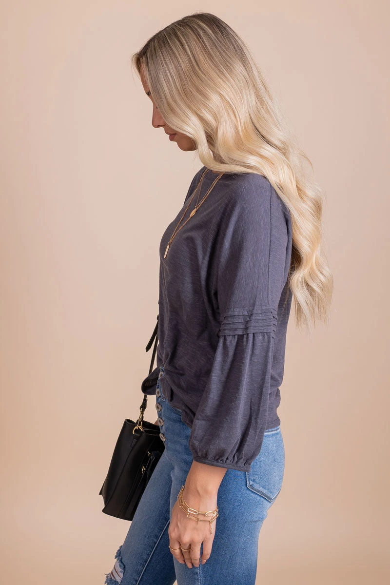 Our Totally Unique Charcoal Gray Top is a must-have item! This top is a solid charcoal gray color. We’re in love with the trendy bubble sleeves and textured accents! The high-quality, lightweight material is perfect for wearing during any season.