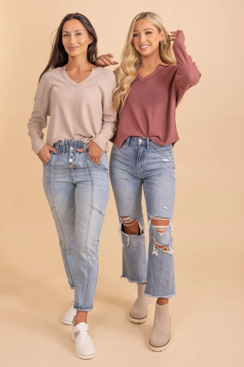 Our new Trust The Process V-Neck Sweater will quickly become your new favorite! This sweater features the perfect two colors. The high-quality, knit material makes it so comfortable to wear! The relaxed fit adds the perfect finishing touch.