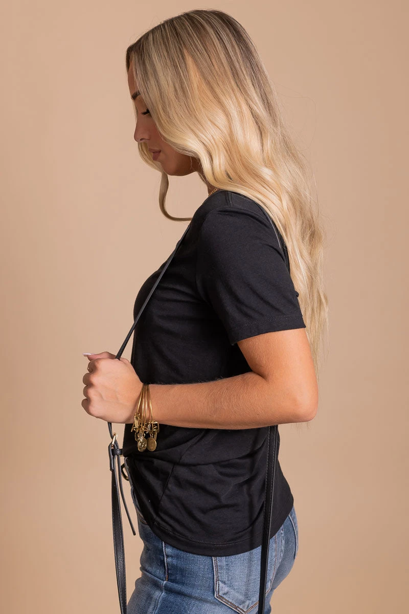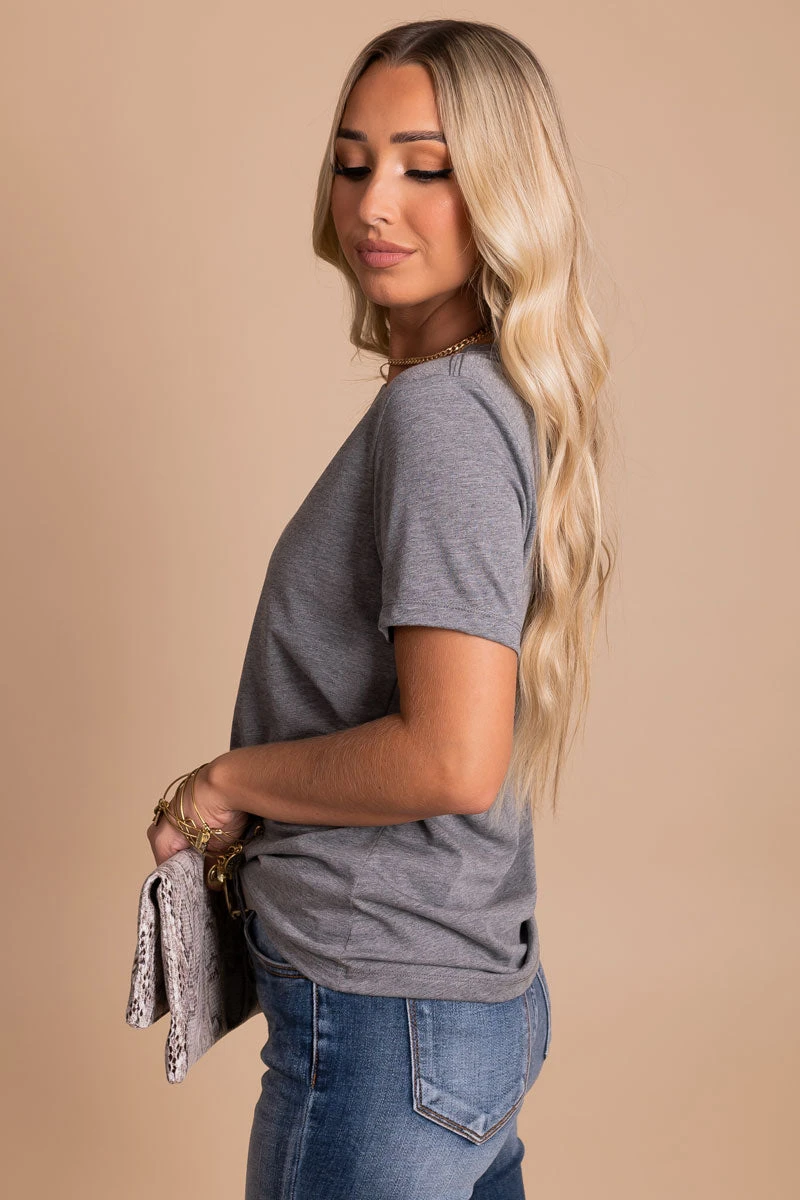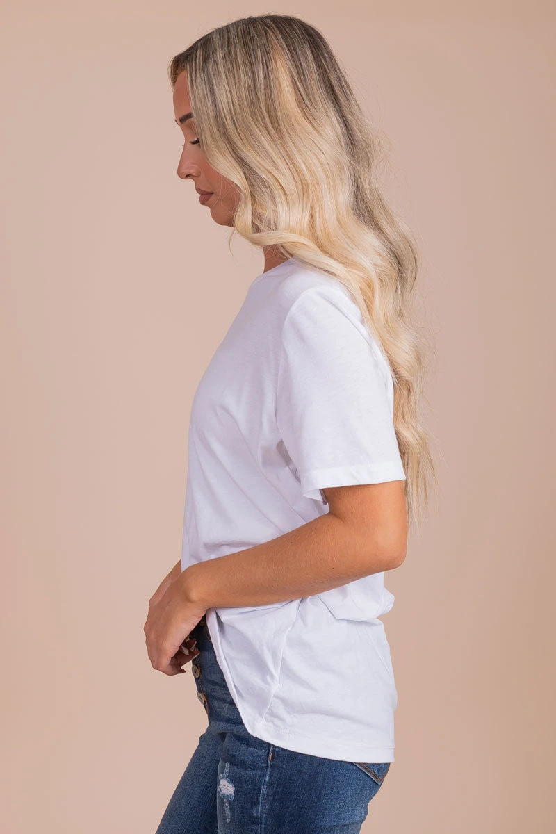 Our Trust The Timing Basic Crewneck Tee would be perfect for a day spent running errands, relaxing at home, or layered with a cardigan for a chilly day.