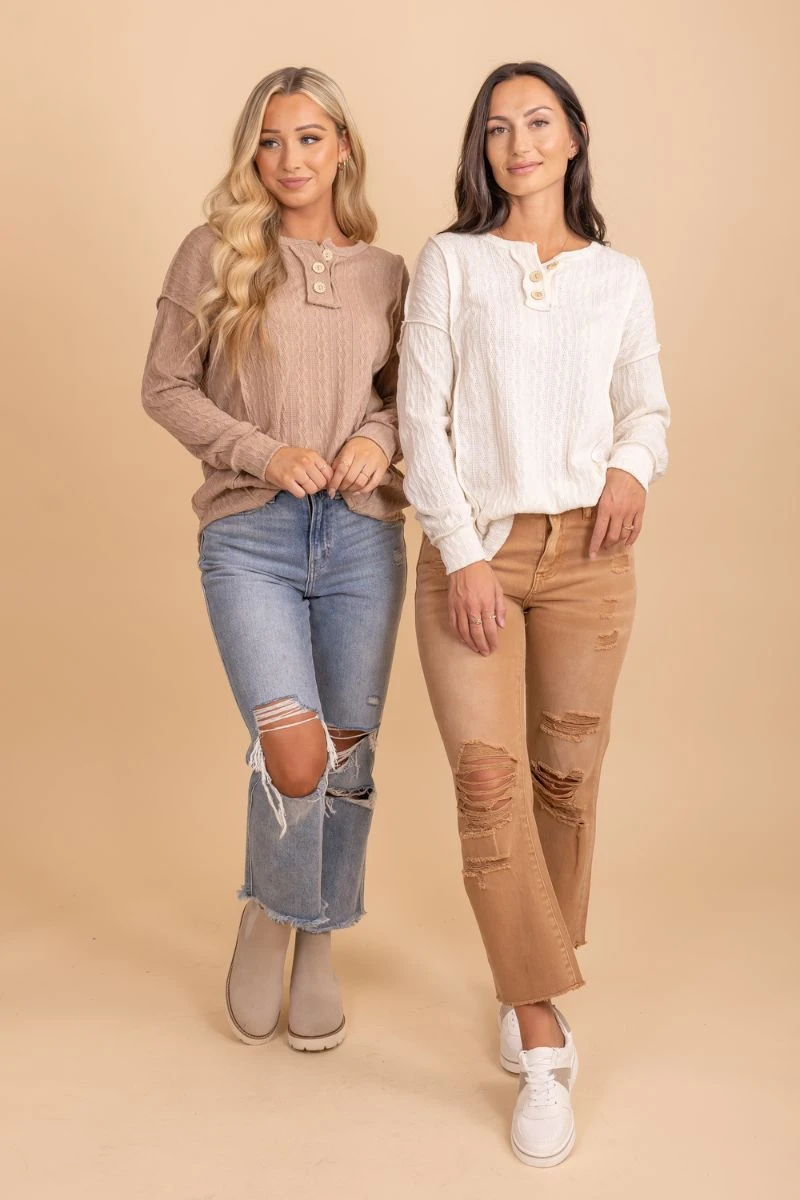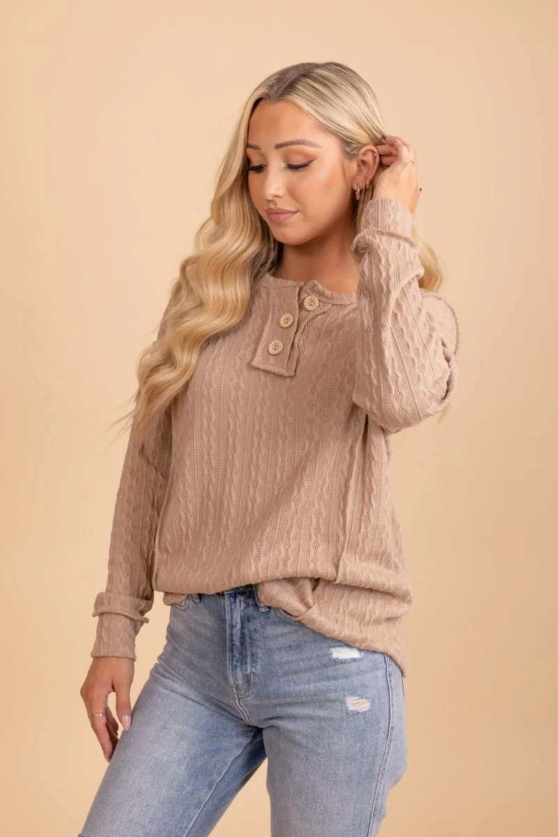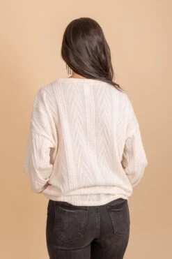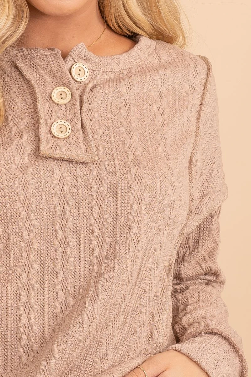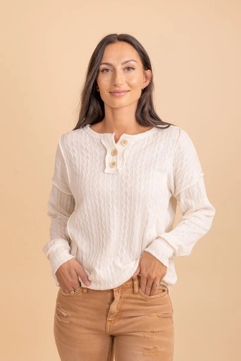 Our When The Time Is Right Cable Knit Sweater is a must-have! This sweater features the most comfortable cable knit material, cozy long sleeves, and a button up neckline. The stretchy, soft knit material make this sweater so comfy for the chilly days ahead!