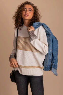 Pair your When The Time Is Right Cable Knit Sweater with your favorite denim jeans and short booties for a fun fall outfit. It would be perfect for a chilly day out, date night, or just lounging at home.
