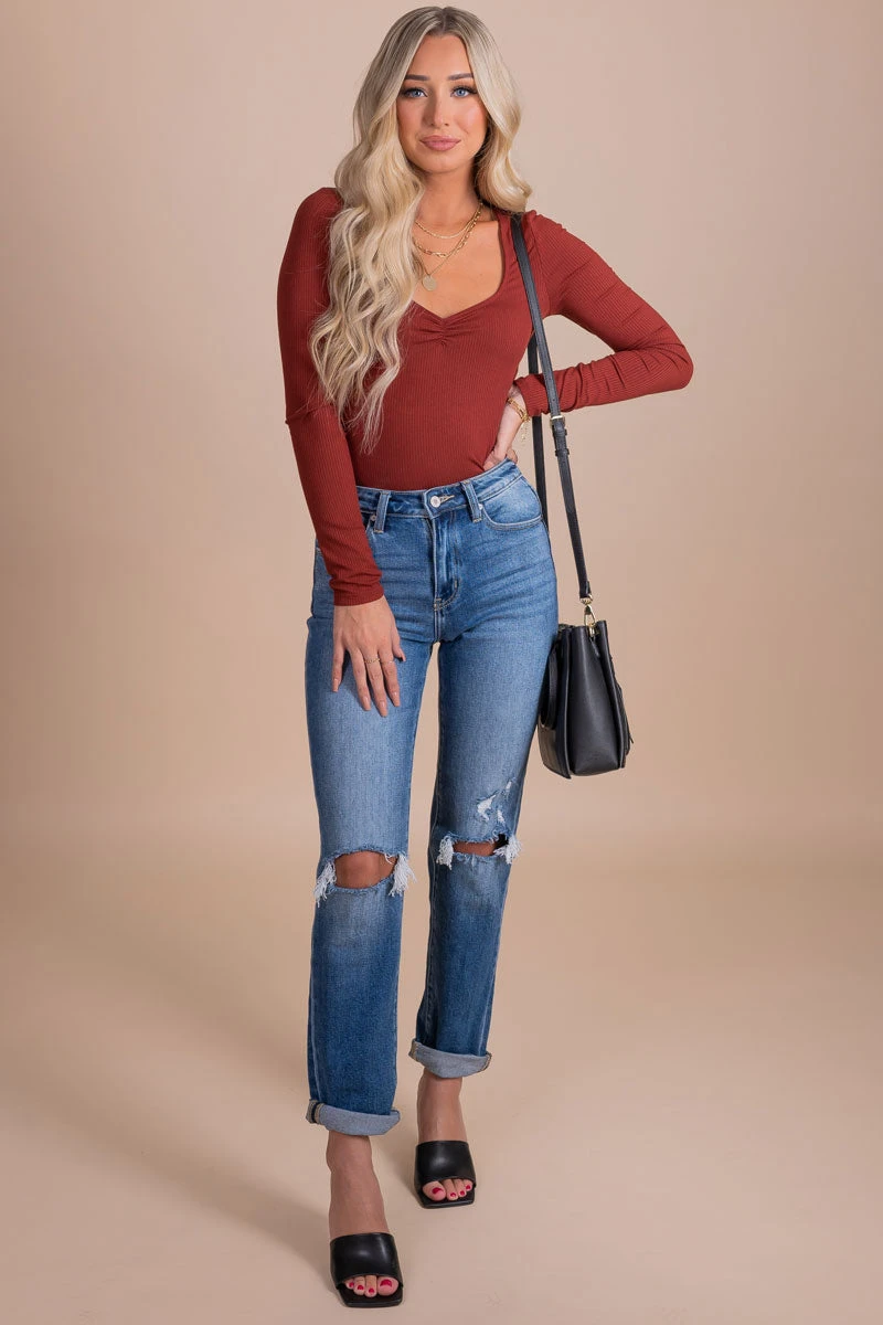 Pair your Wild Romance Long Sleeve Bodysuit with your favorite jeans and booties for a cute fall outfit!