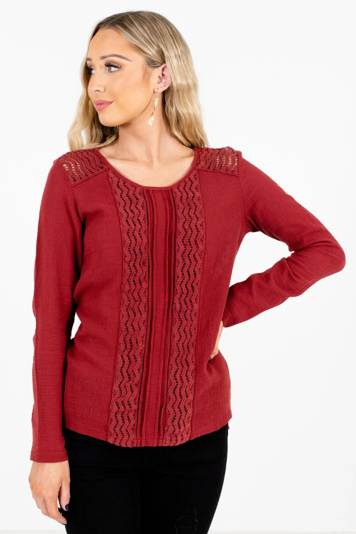 Our new You’re My Everything Rust Red Top is perfect for everyday wear! This cute top is a solid rust red color. It features a round neckline, keyhole back, and long sleeves! We’re obsessed with the crochet lace detailing on the bodice. The lightweight material is great for layering! Pair our You’re My Everything Rust Red Top with skinny jeans and your favorite booties to create a cute, everyday look.