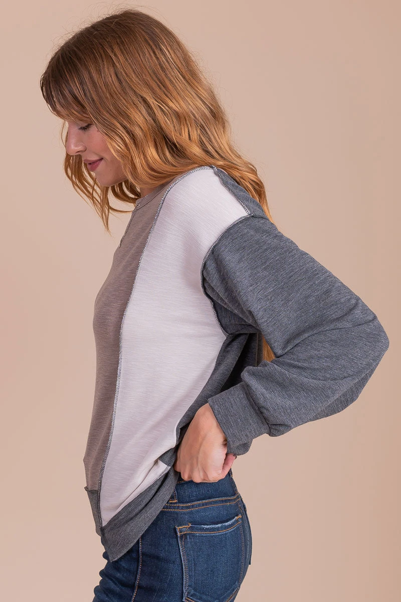 Our Young and In Love Color Block Top is such a cute fall top! We’re in love with the color block pattern, long sleeves, and unique cut-out details! The round neckline and cozy, high-quality material make this top so fun to wear! Layer your Young and In Love Color Block Top under your favorite winter coat to add a fun twist to your outfit!